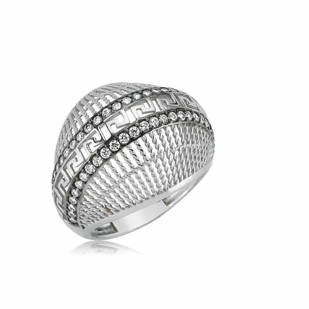 Çift sıra taşlarla dizayn edilmiş özel tasarım bayan yüzük modeli 925 ayar gümüşten imal edilmiştir. Gümüş yüzük üzerine rodyum kaplama yapılmıştır. Rodyum kaplama yapılan gümüş bayan yüzük modelleri parlaklığını uzun süre muhafaza eder, oksitlenmesi gecikir. Gümüş çift sıra taşlı bayan yüzük modeli üzerinde bulunan beyaz taşlar zirkondur. Gümüş yüzük modellerinin tamamı el emeği ile üretilmiştir. Gümüş ve değerli taşlar nedeniyle belirtilen ortalama ürün ağırlığında ± %10 sapma olabilmektedir.