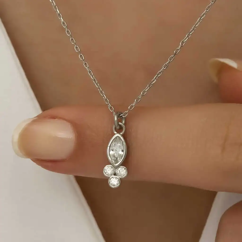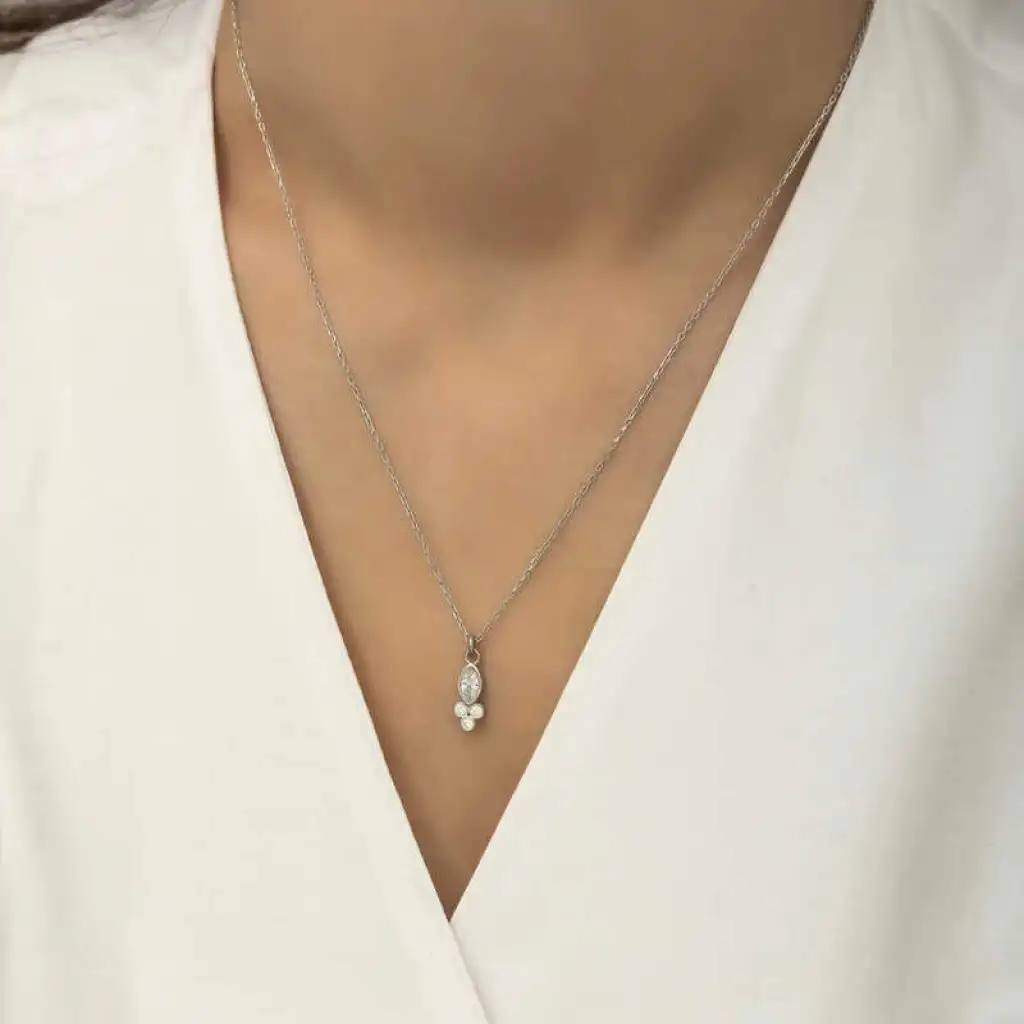 Gümüş Çiğ Damlası Mekik Tek Taş Bayan Kolye