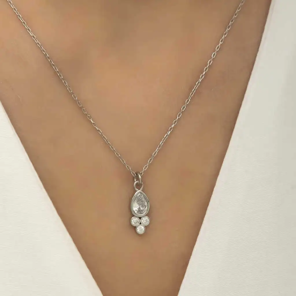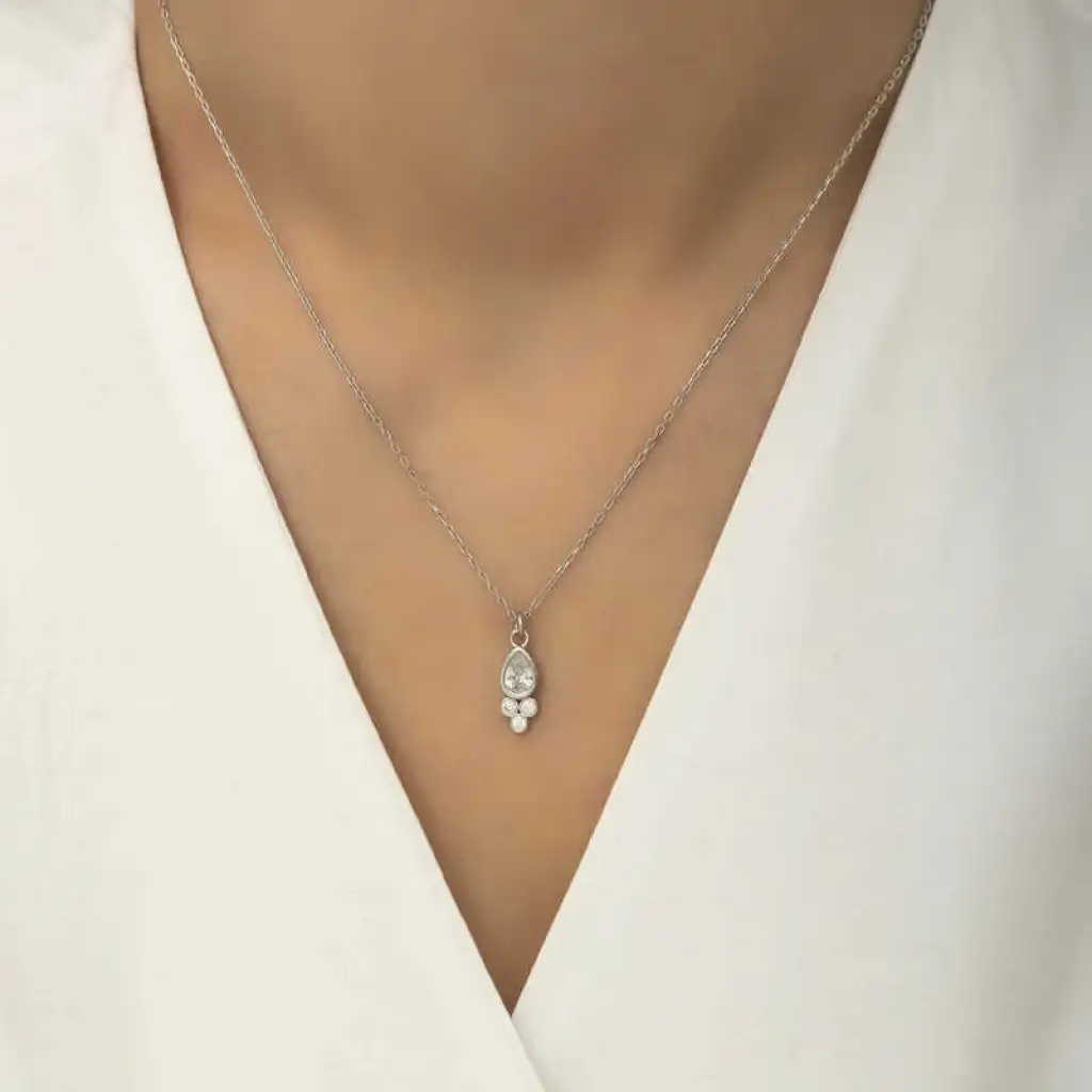 Gümüş Çiğ Damlası Tek Taş Bayan Kolye