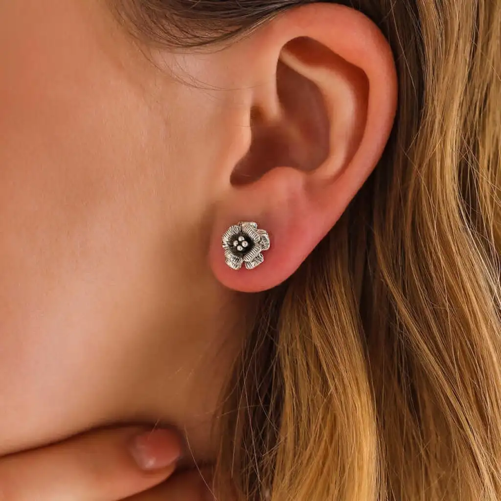 Gümüş Çivili Gül Kadın Küpe