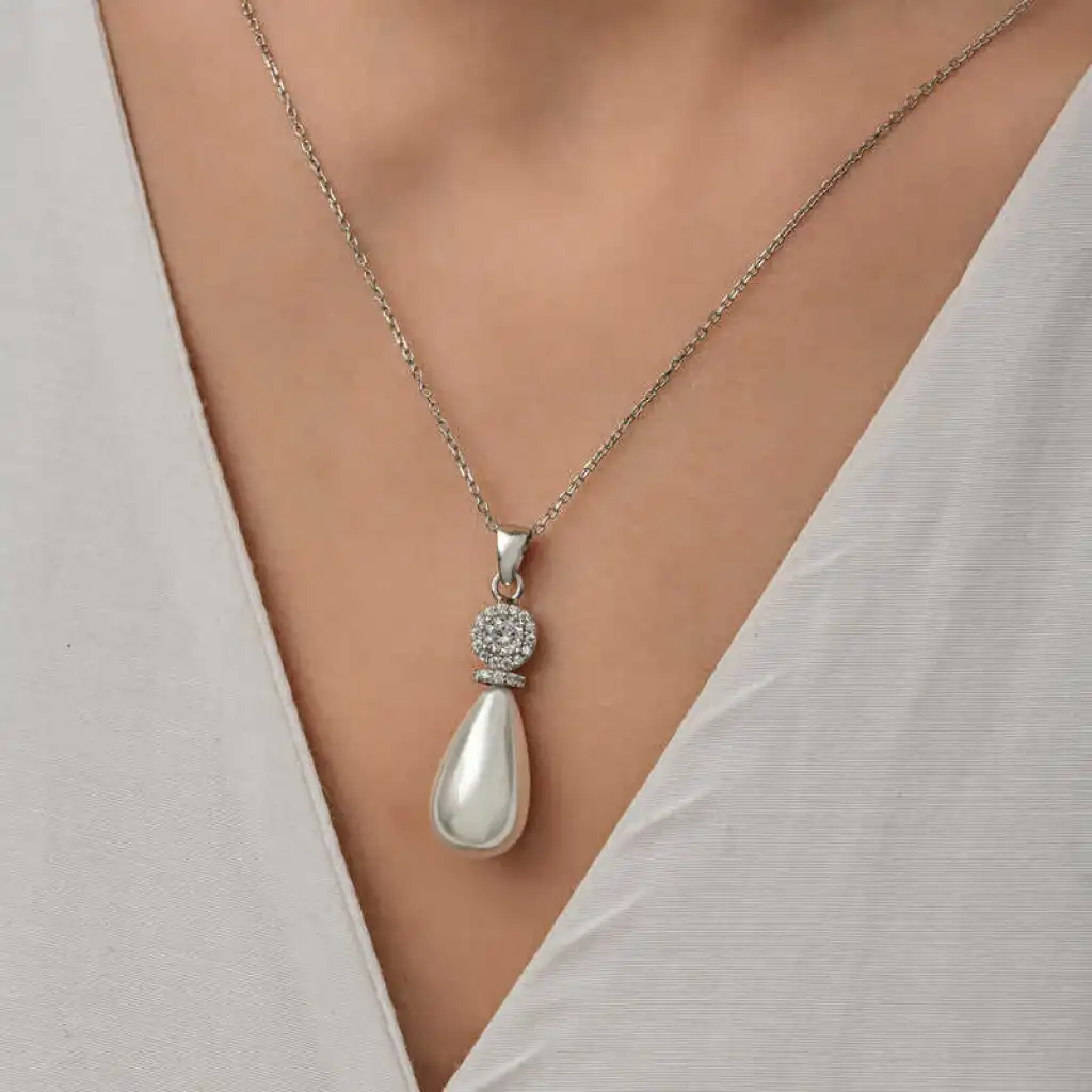 İnci sadelik ve alçak gönüllülüğü simgeler. Sade gözükmekle beraber, aslında çok kıymetli olmayı anlatır. Sevgilinize duyduğunuz aşkınızı ve duygularınızı anlatmanın en güzel yoludur inci. Parıltının, ışığın, aydınlığın ve umudun sembolüdür. Her kadının aksesuarları arasında bulundurması gereken modası hiç bir zaman geçmeyecek olan gümüş damla inci kadın kolye ile duygularınızı sevdiğiniz kadının teninde hissettirmeye ne dersiniz... 925 ayar gümüşten imal edilmiştir. Gümüş üzerine rodyum kaplama yapılmıştır. Rodyum kaplama yapılan gümüş inci kolyeler parlaklığını uzun süre muhafaza eder, oksitlenmeyi geciktirir. Üzerinde bulunan taş kültür incisidir. Zincir boyu ortalama 45 cm'dir. Ürünlerimizin tamamı el emeği ile üretilmiştir. Gümüş ve değerli taşlar nedeniyle belirtilen ortalama ürün ağırlığında ± %10 sapma olabilmektedir.