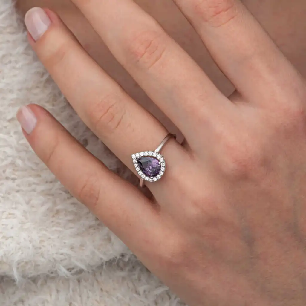 Gümüş Damla Mor Taşlı Kadın Yüzük