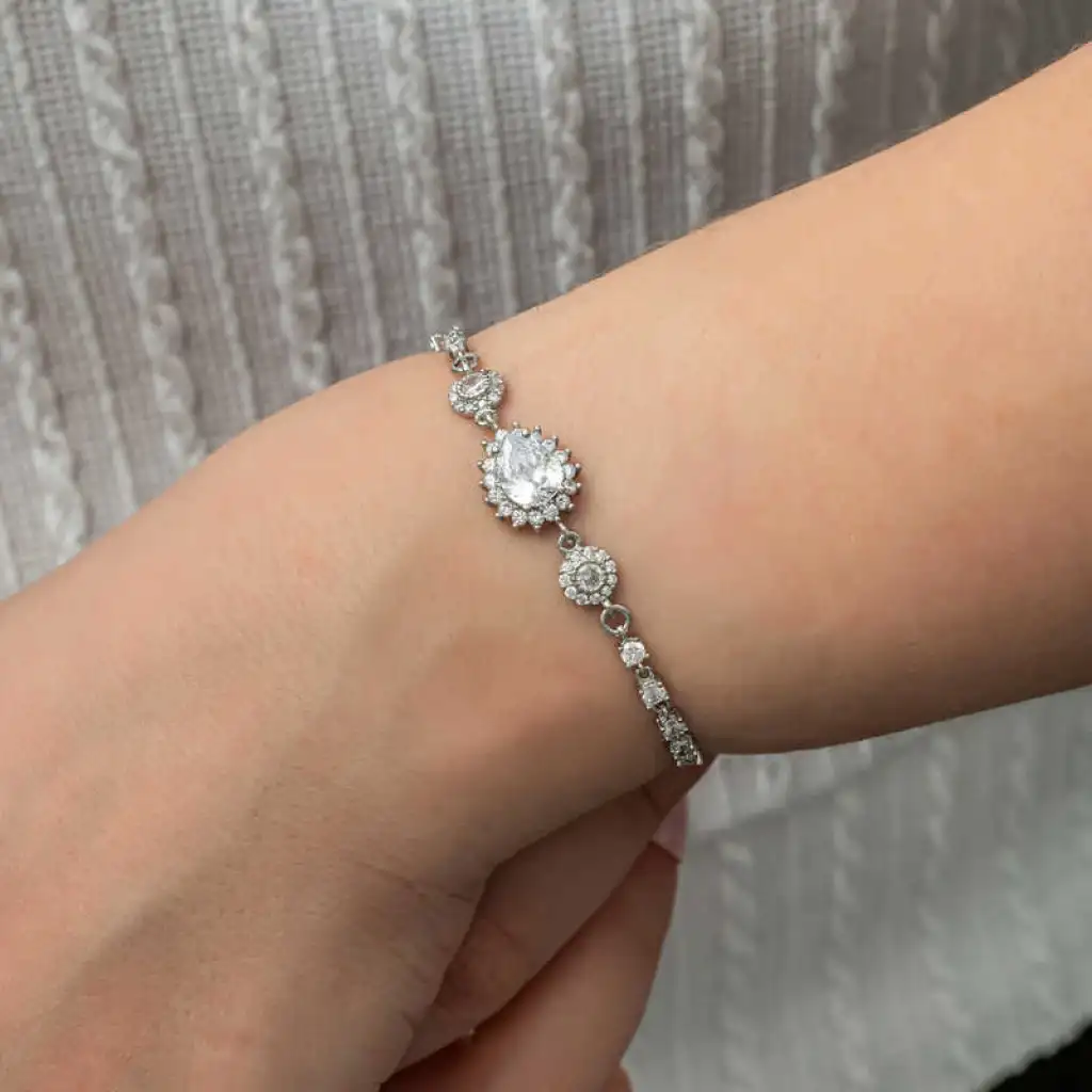 Gündelik hayatta, özel günler ve gecelerde tercih edebileceğiniz ışıl ışıl beyaz renk taşları ile yıldızları anımsatan bu bilekliği severek kullanacaksınız. Şık bir görünüm yakalamak isteyen tüm kadınlara hitap eden, modası geçmeyecek olan damla su yolu gümüş bileklik sizleri bekliyor. Gümüş damla su yolu kadın bileklik; doğum günü hediyesi, sevgililer günü hediyesi veya annelere hediye olarak özel günlerde tercih edilebilecek mükemmel bir seçenektir. Gümüş damla su yolu kadın bileklik 925 ayar gümüşten imal edilmiştir. Gümüş üzerine rodyum kaplama yapılmıştır. Rodyum kaplama yapılan kadın bileklikler parlaklığını uzun süre muhafaza eder ve oksitlenmesi gecikir. Tüm kadın bilekliklerde olduğu gibi gümüş damla su yolu kadın bileklik de el emeği ile üretilmiştir. Gümüş ve değerli taşlar nedeniyle belirtilen ortalama ürün ağırlığında ± %10 sapma olabilmektedir.