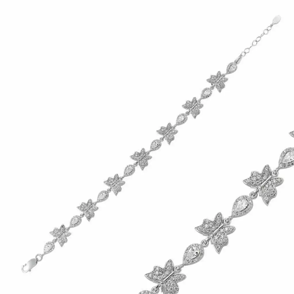 Gümüş Damla Taşlı Kelebek Bayan Bileklik