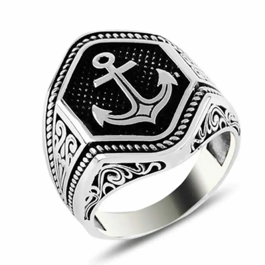 Gümüş Deniz Çapası Armalı Erkek Yüzük