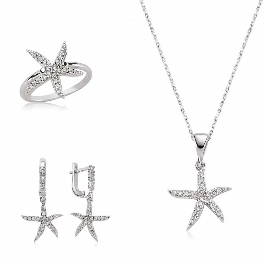 Deniz Yıldızı; ilahi aşkı, ilahi rehberliği, ilhamı, parlaklığı ve umudu sembolize eder. Gökyüzünden denizlere düşmüş deniz yıldızı ile ruhunuz umut ve aşkla dolsun. Gümüş deniz yıldızı set eşini, annesini, sevgilisini, kızını ya da arkadaşını sevindirmek isteyen herkesin alabileceği bir hediye seçeneğidir. 925 ayar gümüşten imal edilmiştir. Gümüş üzerine rodyum kaplama yapılmıştır. Rodyum kaplama yapılan ürünler parlaklığını uzun süre muhafaza eder, oksitlenmesi gecikir. Üzerinde bulunan taşlar zirkondur. Zincir boyu ortalama 45 cm'dir. Ürünlerimizin tamamı el emeği ile üretilmiştir. Gümüş ve değerli taşlar nedeniyle belirtilen ortalama ürün ağırlığında ± %10 sapma olabilmektedir.