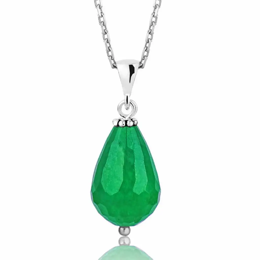 Gümüş Doğal Yeşim Taş Bayan Kolye