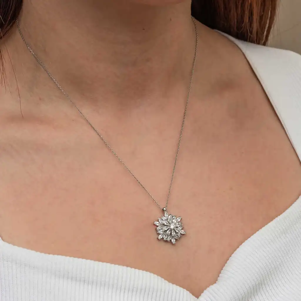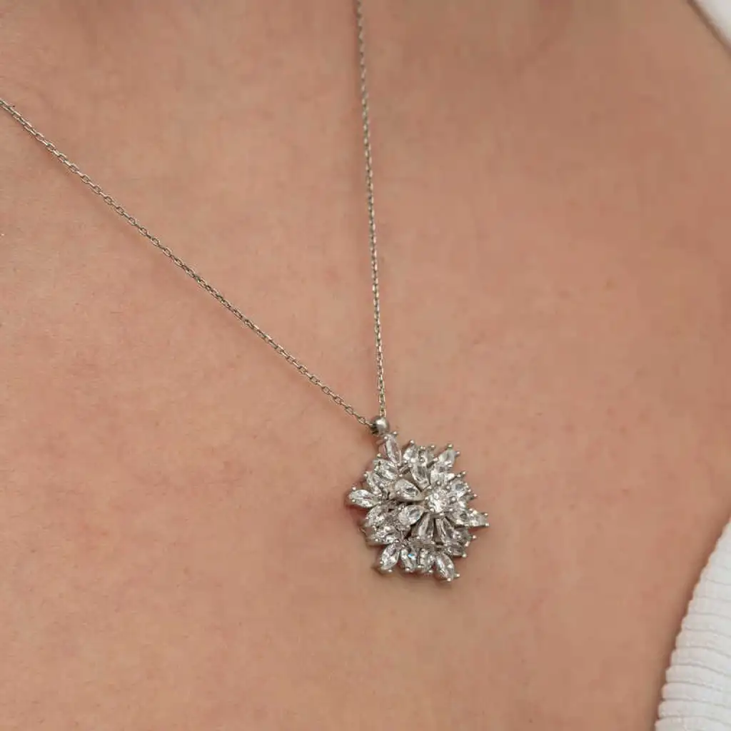 Gümüş Dönen Kar Tanesi Lotus Çiçeği Kolye