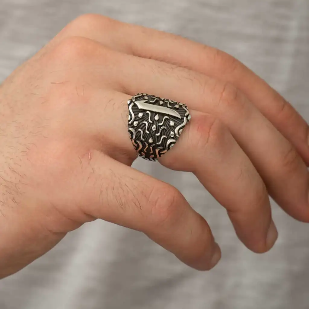 Elif, Arapça’nın ilk harfidir. Alfabetik özelliği itibariyle kendisine soldan bir harf bağlanmaz. Diğer harflerle sadece sağdan bileşir. Elif Harfi, Arapça alfabede Allah’ı sembolize eden harftir. Ebcet hesabında sayı olarak 1’li simgeler, Allah'ın birliğini ve tekliğini sembolize eder. Elif her zaman dik yazılır. Yeryüzünden göğe doğru duruşu ile de Allah’ı işaret eder... Bu derin ve güzel anlamlardan yola çıkarak tasarladığımız arapça elif yazılı erkek yüzük modeli kendinize ya da sevdiklerinize doğum gününde, babalar gününde veya özel günlerde tercih edebilirsiniz. Bu şık yüzük 925 ayar gümüşten imal edilmiştir. Gümüş üzerine oksit kaplama yapılmıştır. Oksit kaplama yapılan yüzükler otantik bir görünüme kavuşur. Tüm erkek yüzük modellerinde olduğu gibi gümüş elif yazılı erkek yüzük modeli de el emeği ile üretilmiştir. Gümüş ve değerli taşlar nedeniyle belirtilen ortalama ürün ağırlığında ± %10 sapma olabilmektedir.