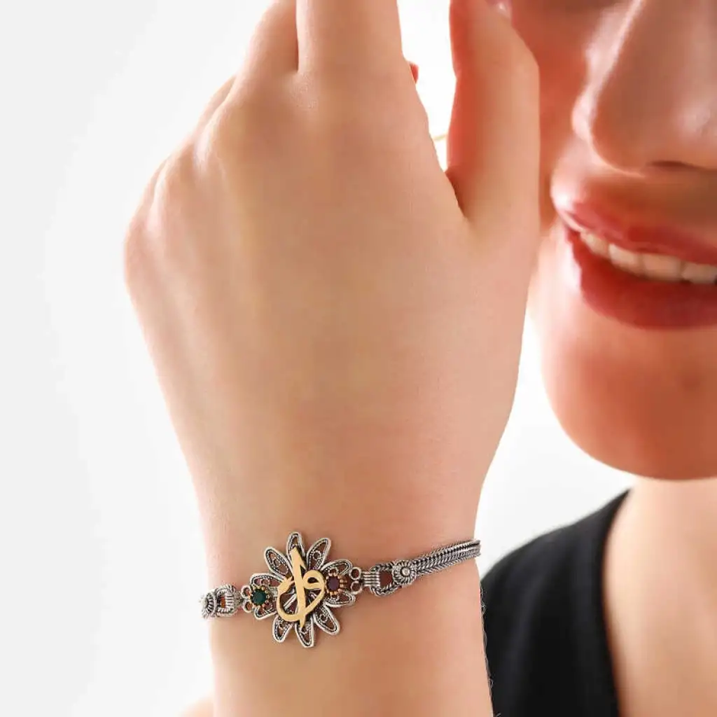 Bu şık tasarım elif vav model otantik bileklik modeli 925 ayar gümüş ve bronz madenleri kullanılarak üretilmiştir. Kırmızı, yeşil zirkon taşlar kullanılarak imal edilen bu desenli otantik elif vav kadın bileklik modeli üzerine oksit kaplama yapılmıştır. Oksitli gümüş otantik kadın bileklik modelleri ilk günkü halini uzun süre muhafaza eder. Tüm gümüş otantik bileklik modellerinde olduğu gibi gümüş otantik elif vav bileklik modeli de el emeği ile üretilmiştir. Gümüş ve değerli taşlar nedeniyle belirtilen ortalama ürün ağırlığında ± %10 sapma olabilmektedir. Zarif bir görünüm yakalamak isteyen tüm kadınlara hitap eden, modası hiç geçmeyecek bu otantik bilekliksizleri bekliyor.