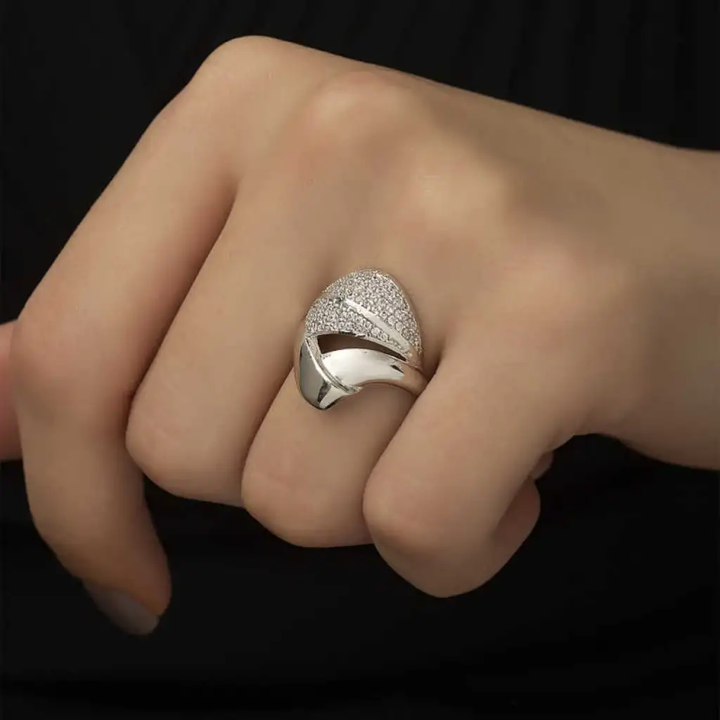 Yüzyıllardır imajınızın simgesi olan takılar, birbirinden özel tasarım koleksiyonlarda sizlerle buluşuyor. Günlük hayatınızdan özel günlerinize kadar her anınızda yanınızda olan gümüş yüzük modelleriyle sizlerde tarzınızı yansıtın. Bu birbirinden farklı dikkat çekici tasarımlar sayesinde ruhunuza hitap eden yaratıcı özgünlüğü ortaya koymaya başlayın. Hayalinizdeki kombinleri gerçeğe dönüştürebileceğiniz gümüş yüzük çeşitleri ile girdiğiniz her ortamda ilgi çekici stiliniz ile ön plana çıkmak artık çok kolay... Fantazi model bayan yüzük 925 ayar gümüşten imal edilmiştir, üzerine rodyum kaplama yapılmıştır. Gümüş yüzük modellerimizin tamamı el emeği ile üretilmiştir. Gümüş ve değerli taşlar nedeniyle belirtilen ortalama ürün ağırlığında ± %10 sapma olabilmektedir.