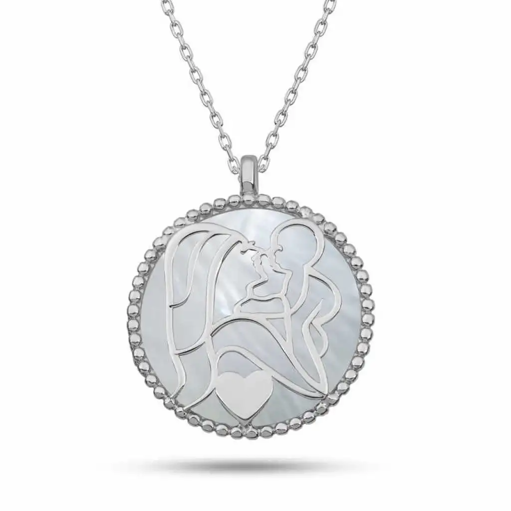 Gümüş Fosforlu Anne Çocuk Sevgisi Kadın Kolye