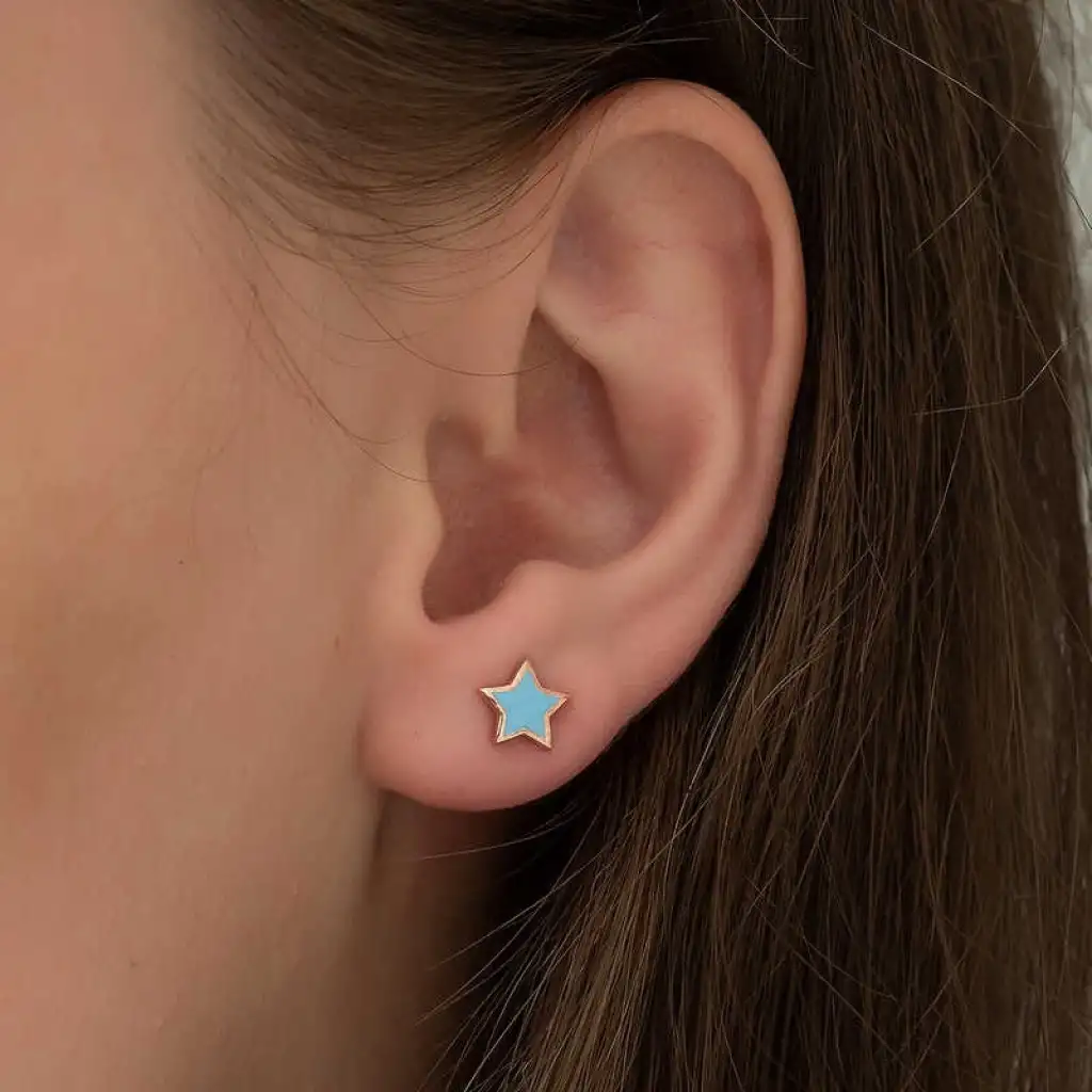 Gümüş çivili küpe modelleri günün her anında kullanabileceğiniz en özel takılar arasındadır. Gümüşün ışıltısını en iyi şekilde dışarıya yansıtabilen ve hafif yapısıyla dikkat çeken gümüş çivili küpeler ile sizler de stilinizi vurgulamaya başlayabilirsiniz. Dış görünümü konusunda hassas olan ve stiliyle ön plana çıkmak isteyen kadınların tercihi olan fosforlu mavi yıldız küpe, gençlerin ve kendisini genç hisseden kadınların stiline uyum sağlayabilecek özgün modeller arasında yer almaktadır. Zamansız tasarımlar arasında gösterilen çivili küpeler modaya uyumlu bir şekilde stilinizi canlandırabilmenizi sağlar. Doğum günü hediyesi, sevgililer günü hediyesi veya özel günlerde tercih edilebilecek mükemmel bir seçenektir. Gümüş fosforlu mavi yıldız bayan küpe; 925 ayar gümüşten imal edilmiştir. Gümüş üzerine rose kaplama yapılmıştır. Rose kaplama yapılan gümüş küpe modelleri parlaklığını uzun süre muhafaza eder ve oksitlenmesi gecikir. Tüm bayan küpelerde olduğu gibi bu küpe modeli de el emeği ile üretilmiştir. Gümüş ve değerli taşlar nedeniyle belirtilen ortalama ürün ağırlığında ± %10 sapma olabilmektedir.
