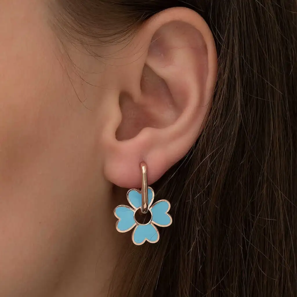 Dış görünüşüne özen gösteren kadınlar için modaya uyumlu şekilde tasarlanan en özel küpe modelleri bu koleksiyonda yer alıyor. Her biri farklı bir tarza ve kullanıma hitap eden küpe modelleri ile sizler de göz alıcı ve büyüleyici bir stil ortaya çıkarabilirsiniz. Fosforlu mavi yonca küpe, gençlerin ve kendisini genç hisseden kadınların stiline uyum sağlayabilecek özgün modeller arasında yer almaktadır. Bu küpe doğum günü hediyesi, sevgililer günü hediyesi veya özel günlerde tercih edilebilecek mükemmel bir seçenektir. Gümüş fosforlu mavi yonca bayan küpe; 925 ayar gümüşten imal edilmiştir. Gümüş üzerine rose kaplama yapılmıştır. Rose kaplama yapılan gümüş küpe modelleri parlaklığını uzun süre muhafaza eder ve oksitlenmesi gecikir. Tüm bayan küpelerde olduğu gibi bu küpe modeli de el emeği ile üretilmiştir. Gümüş ve değerli taşlar nedeniyle belirtilen ortalama ürün ağırlığında ± %10 sapma olabilmektedir.