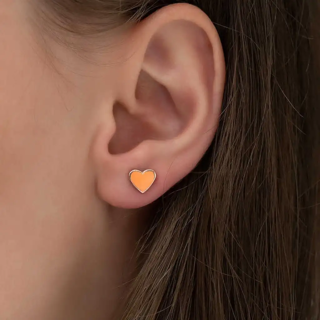 Gümüş Fosforlu Turuncu Kalp Küpe