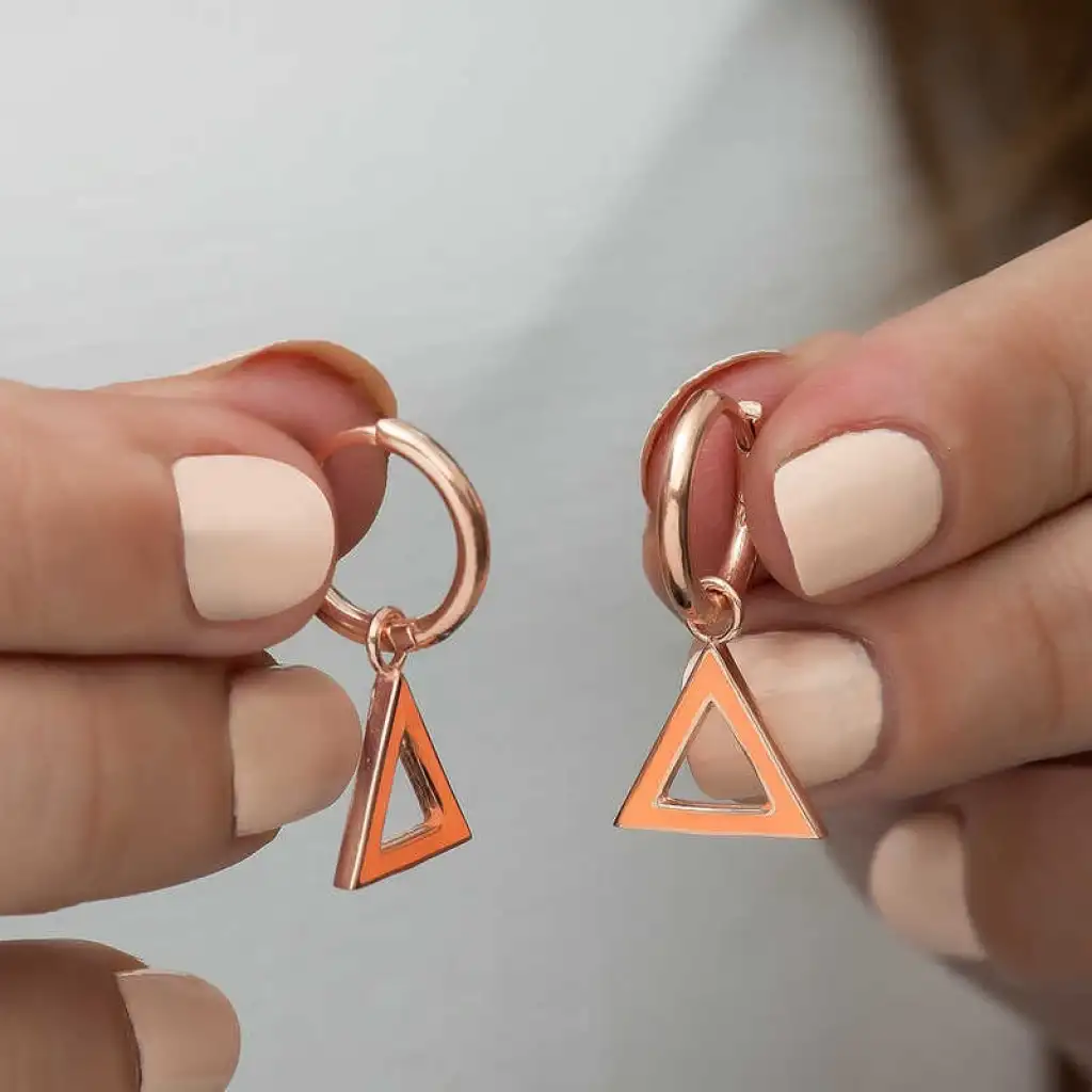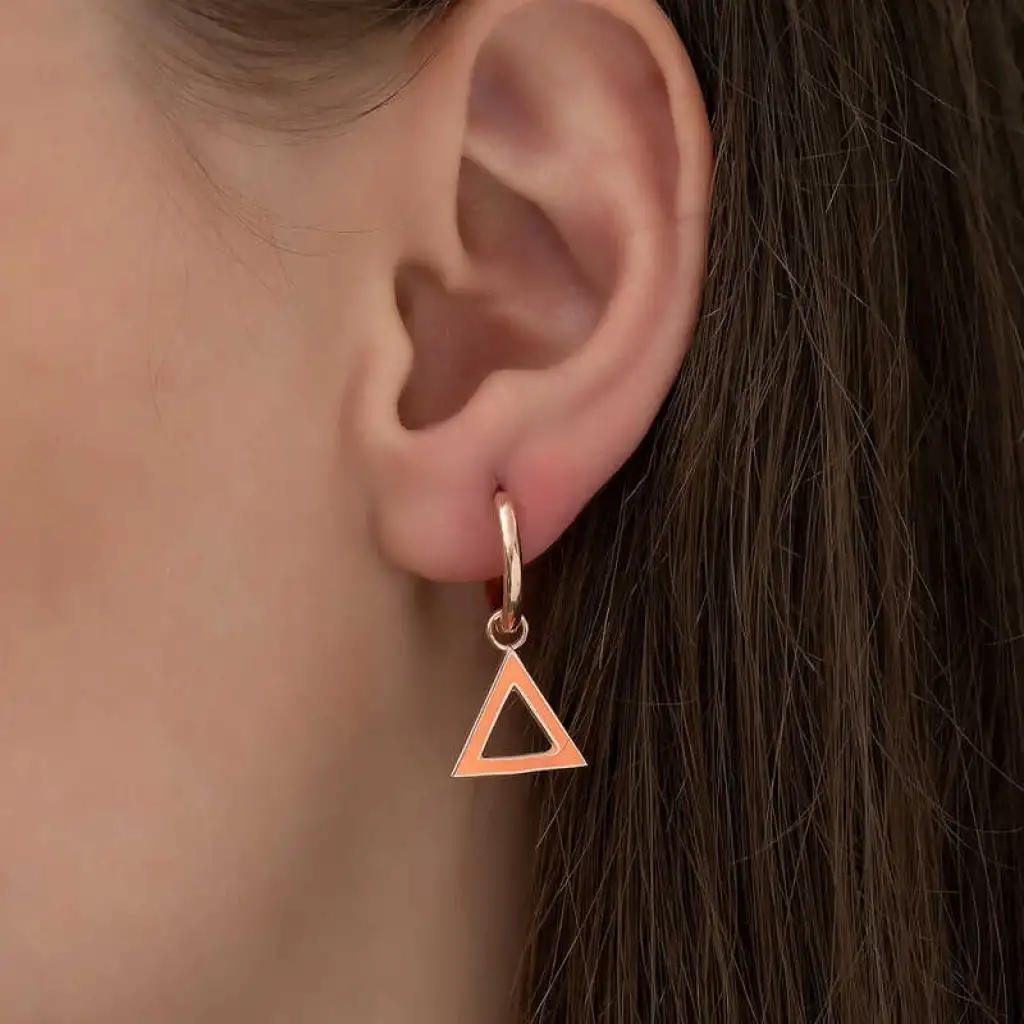 Gümüş Fosforlu Turuncu Üçgen Küpe