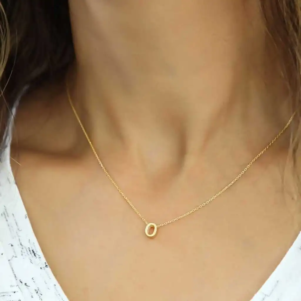 Gümüş Gold 3 Boyutlu O Harf Bayan Kolye