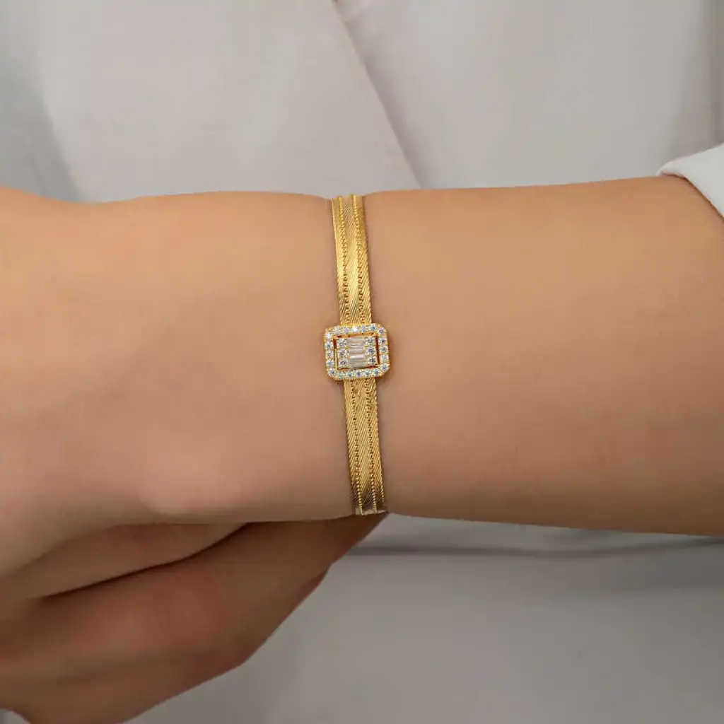 Gümüş Gold Baget Taşlı Trabzon Hasır Bileklik