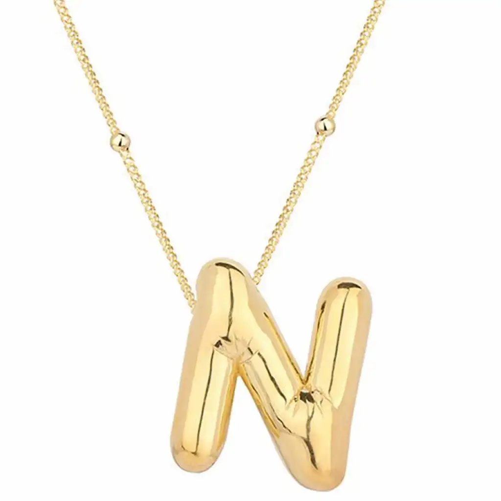 Gümüş Gold Balon N Harfi Kadın Kolye