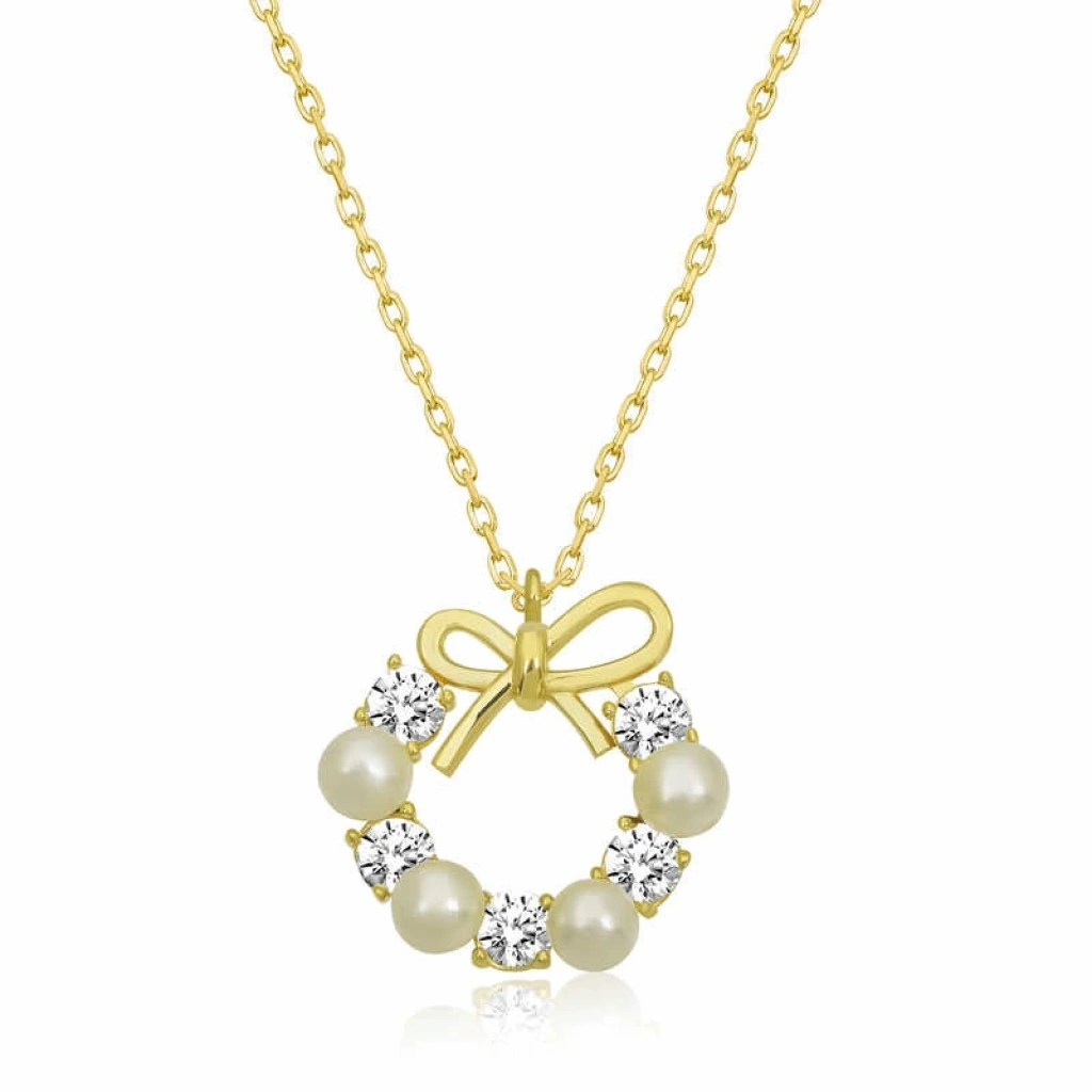 Gümüş Gold İnci Kurdele Kadın Kolye