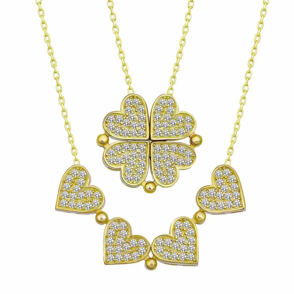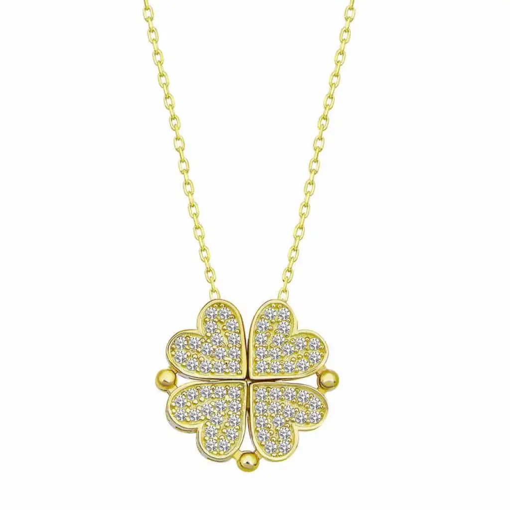 Gümüş Gold Kalpli Açılabilen Yonca Kadın Kolye