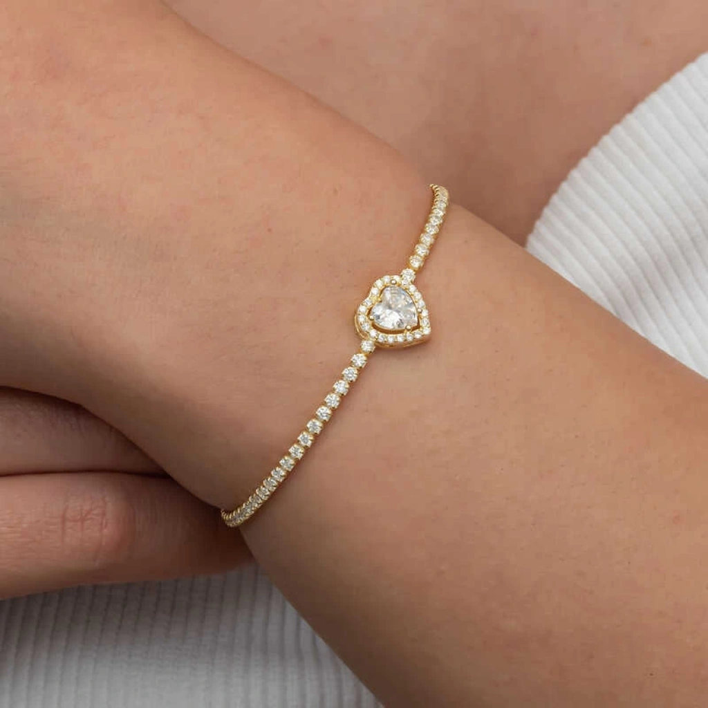 Gümüş Gold Kalpli Su Yolu Bileklik