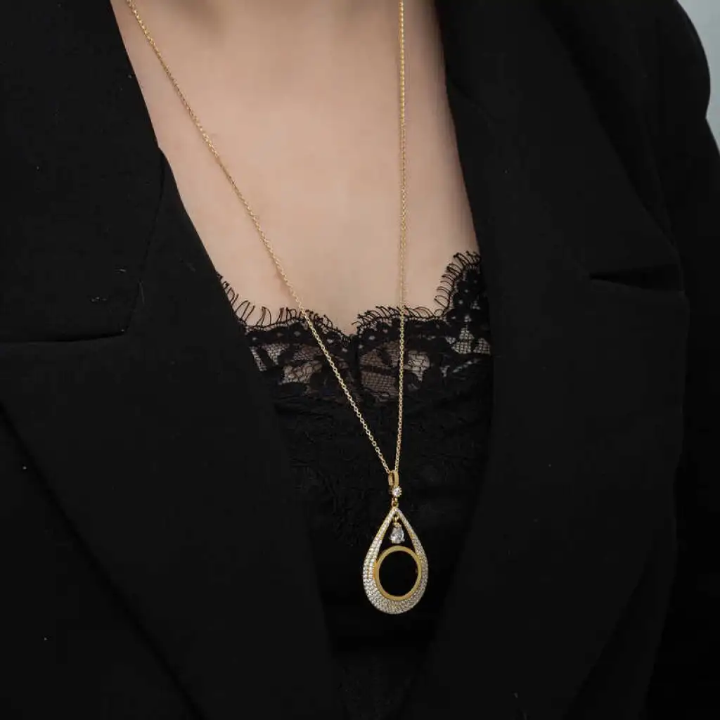 Gümüş Gold Kaplama Damla Çeyrek Takılabilen Kadın Kolye