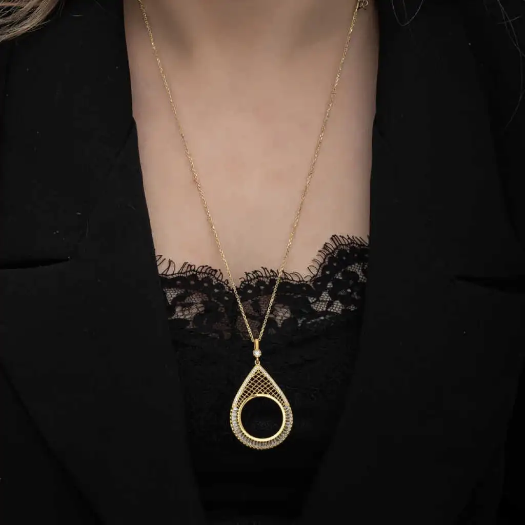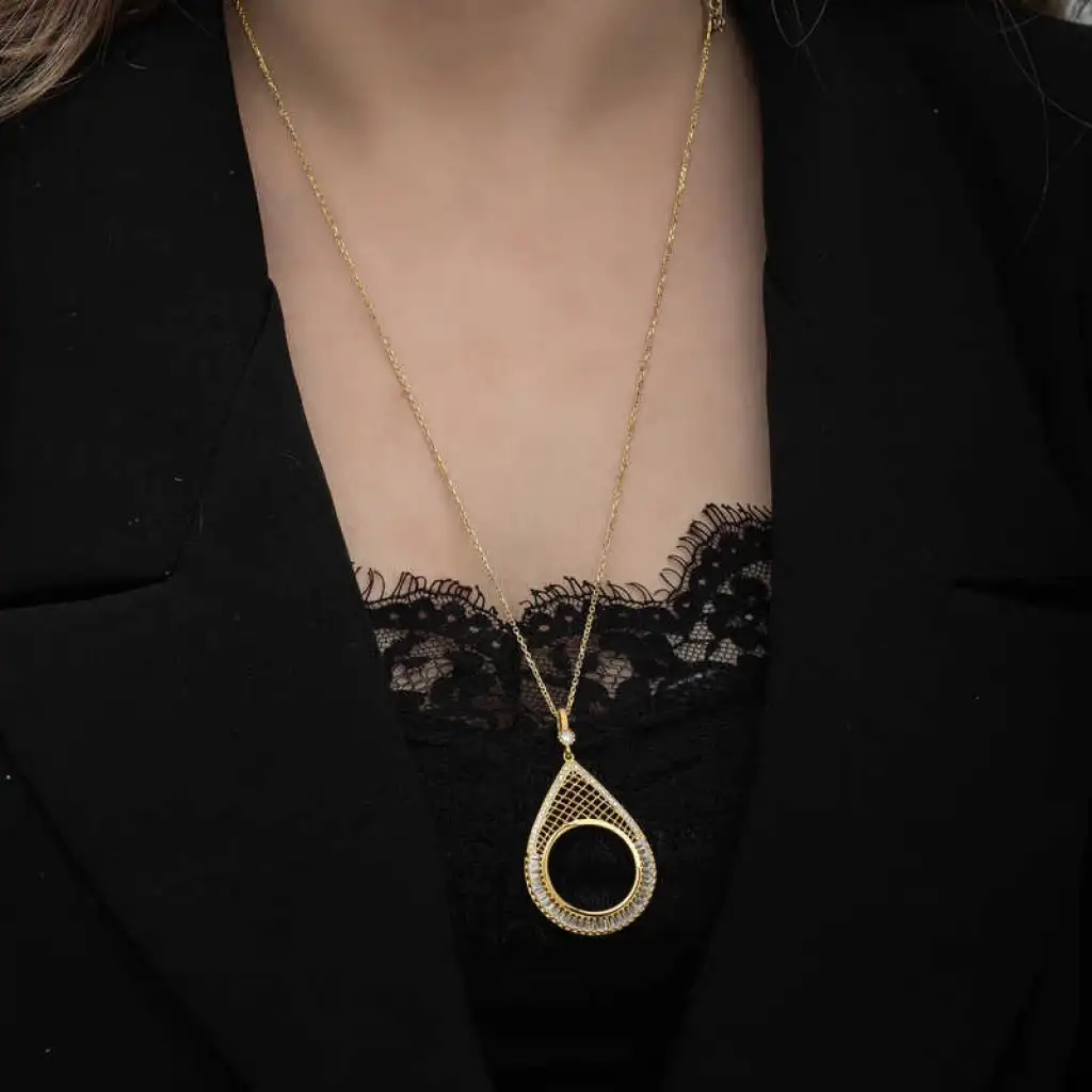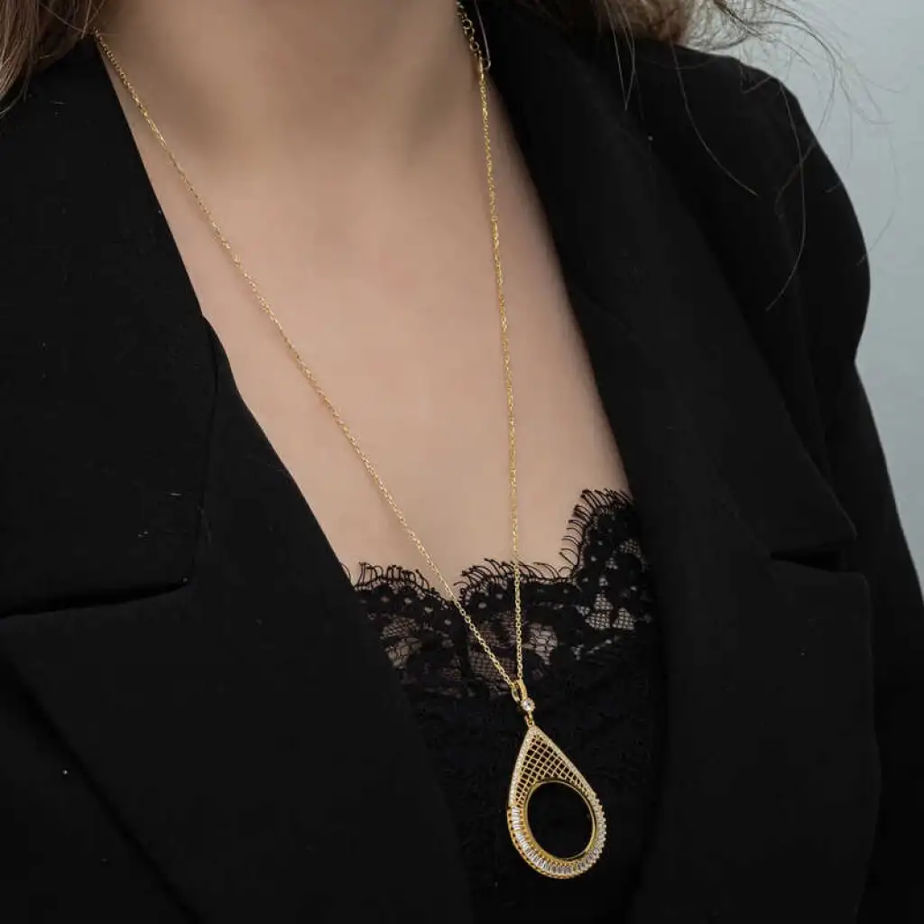 Gümüş Gold Kaplama Damla Yarım Altın Takılabilen Kadın Kolye