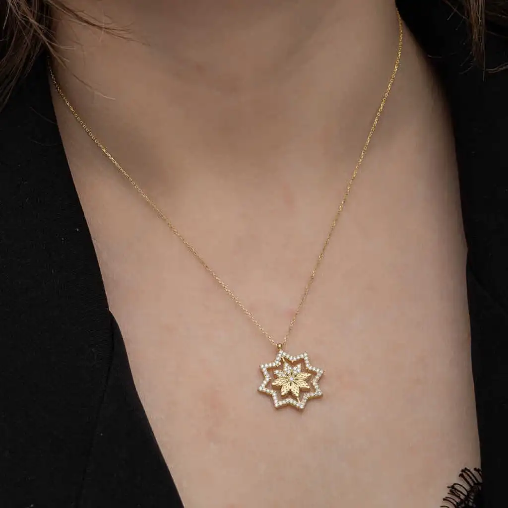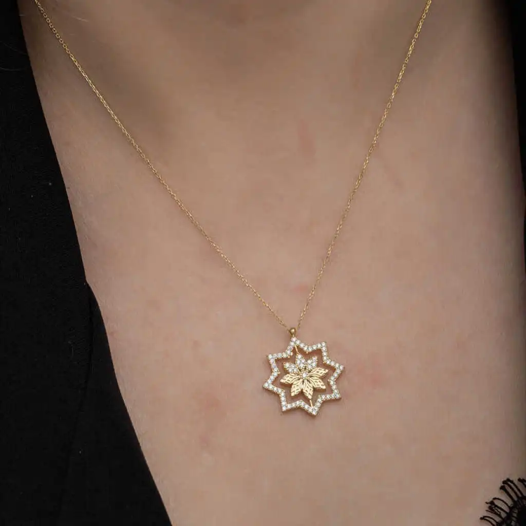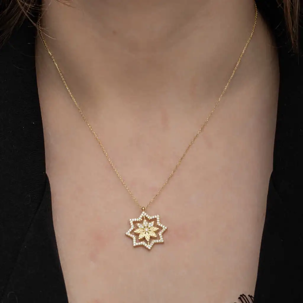 Gümüş Gold Kar Tanesi Kadın Kolye