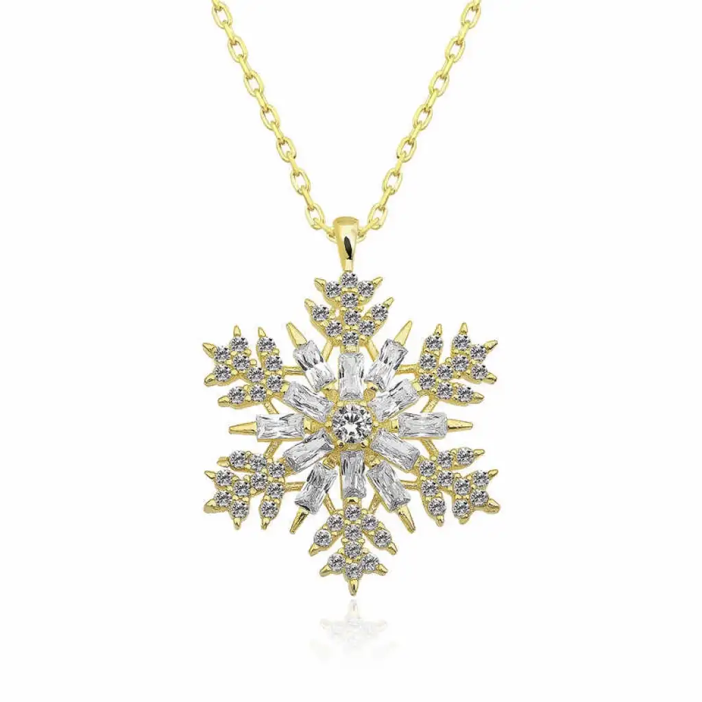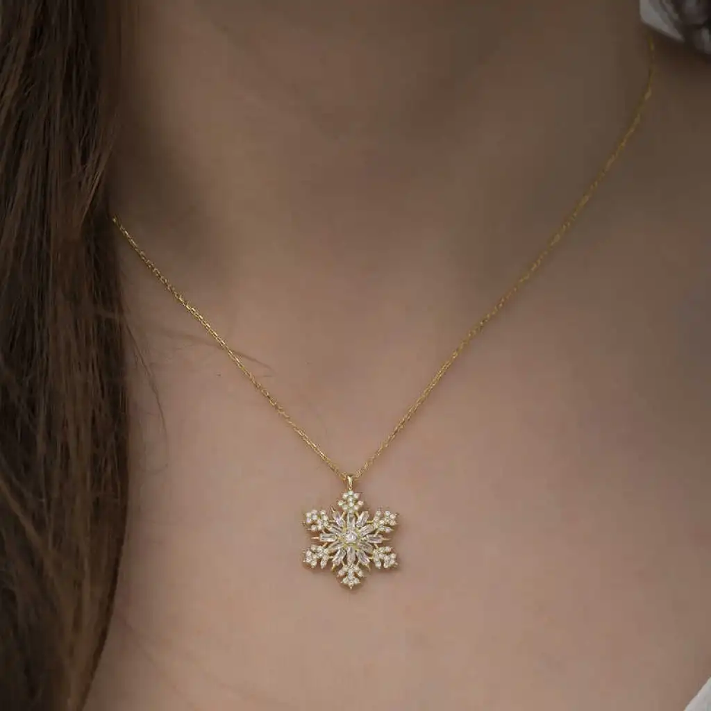 Gümüş Gold Kar Tanesi Kolye