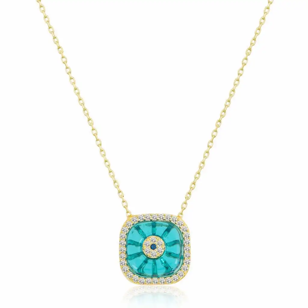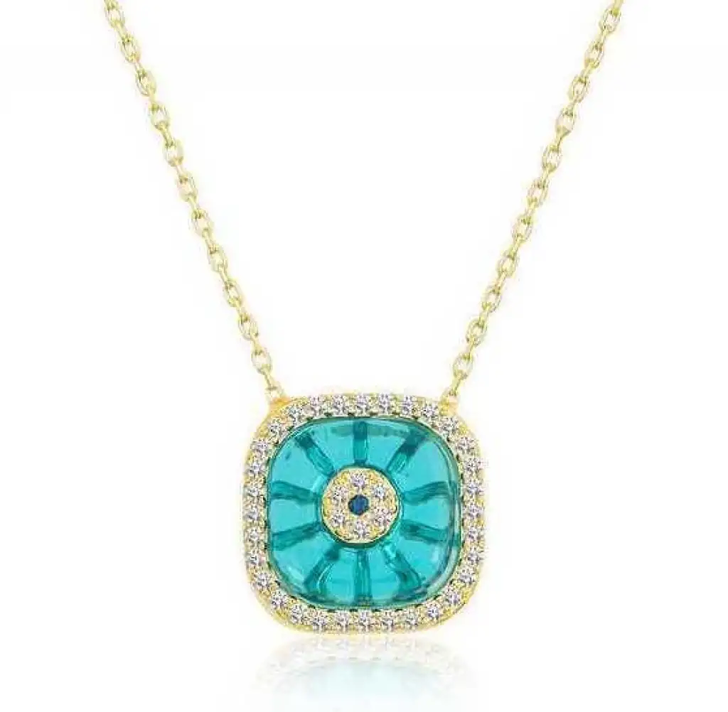 Gümüş Gold Kare Camgöz Nazar Bayan Kolye