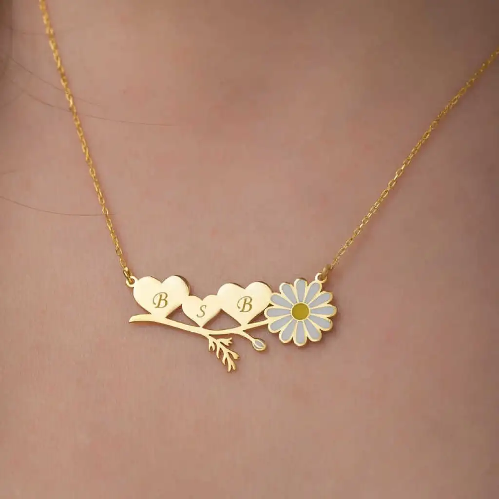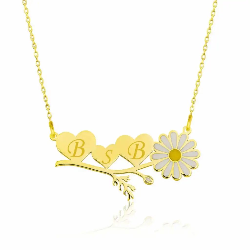 Gümüş Gold Kişiye Özel Kalpli Papatya Kolye