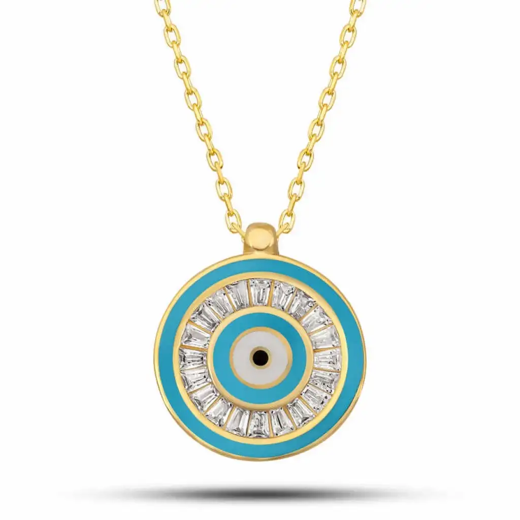 Gümüş Gold Nazar Boncuğu Kadın Kolye