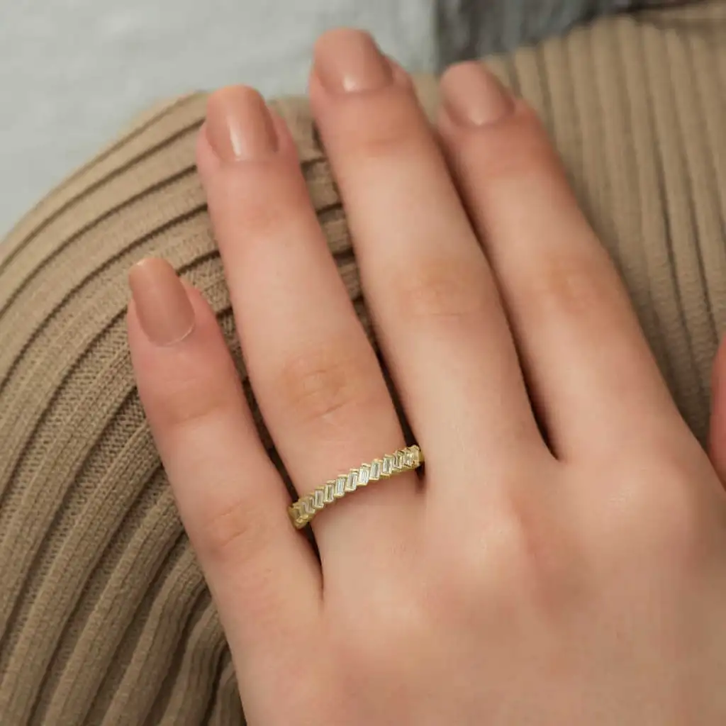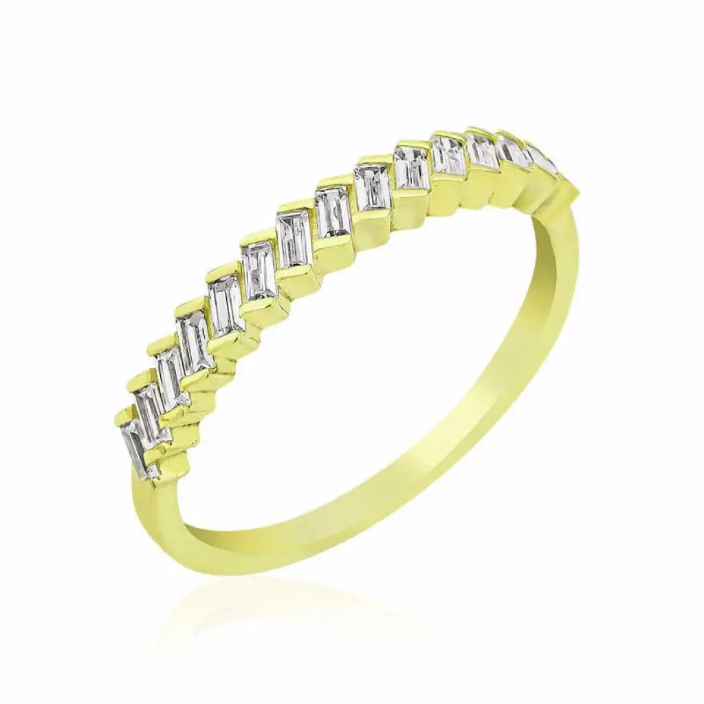 Gümüş Gold Sıralı Baget Taşlı Bayan Yüzük