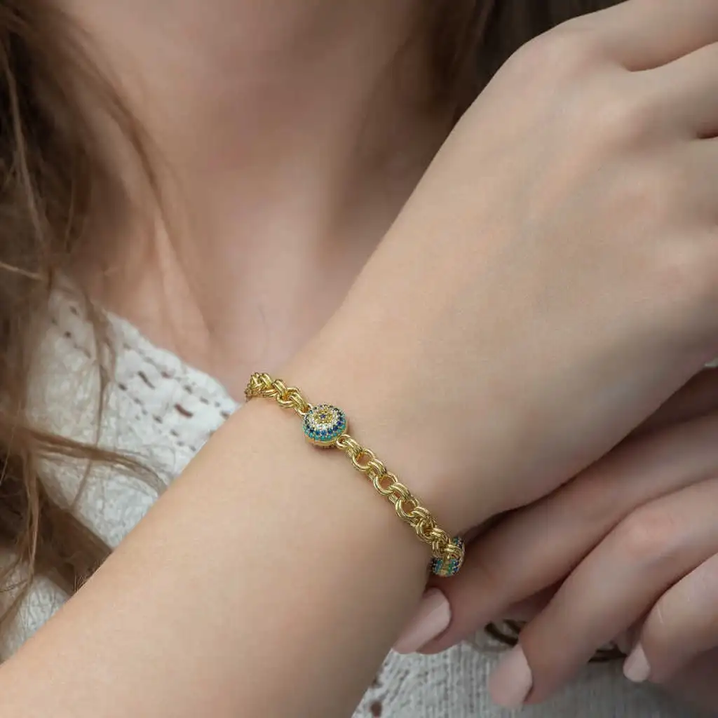 Gümüş Gold Sosyete Gözlü Zincir Bileklik