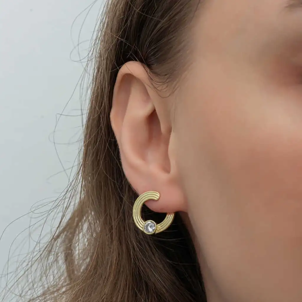 Gümüş Gold Tektaş Halka Kadın Çivili Küpe