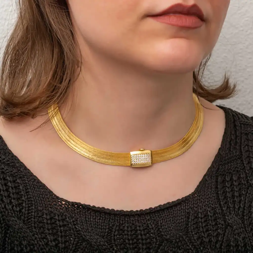 Gümüş Gold Zirkon Taşlı Trabzon Hasır Kadın Kolye