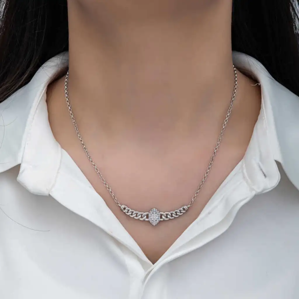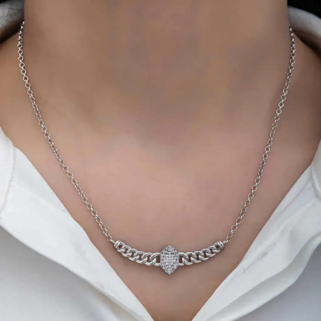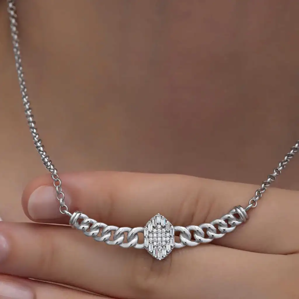 Gümüş Gurmet Zincirli Baget Taşlı Kadın Kolye
