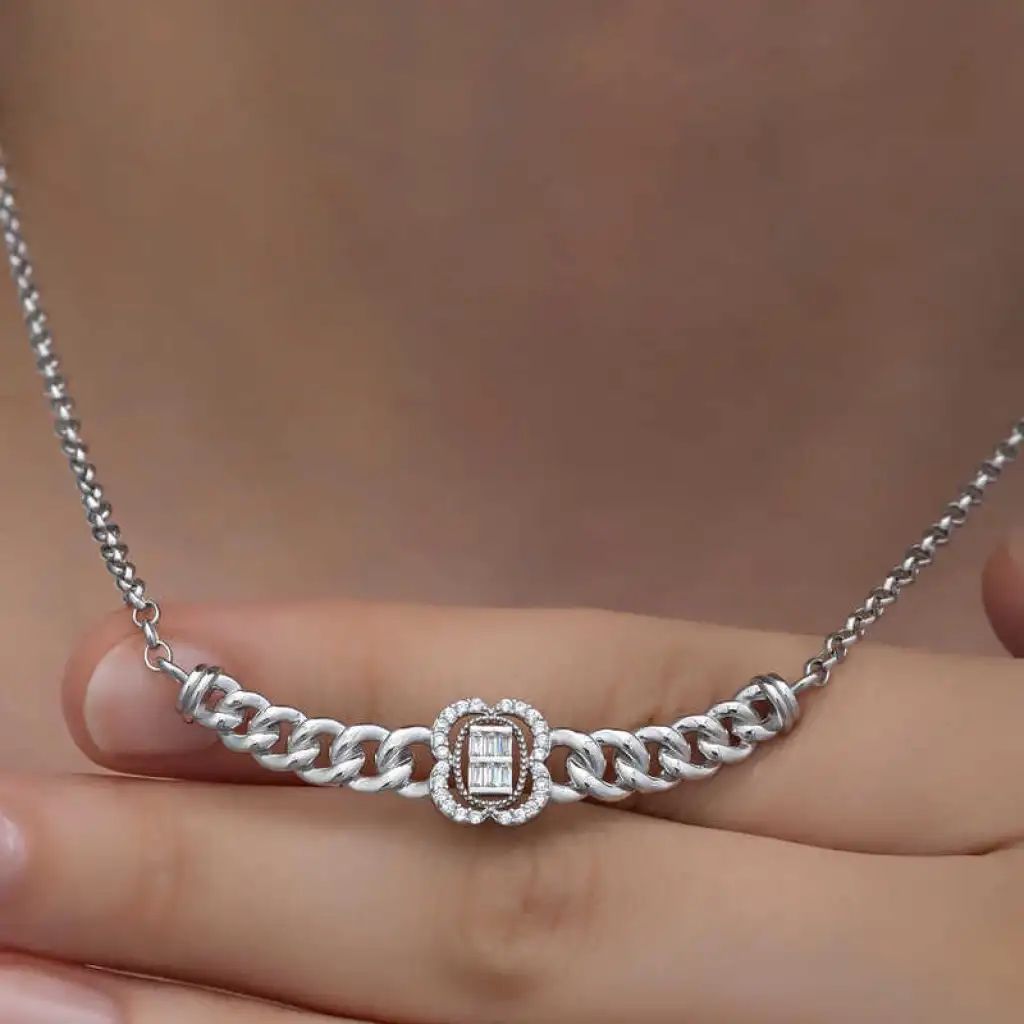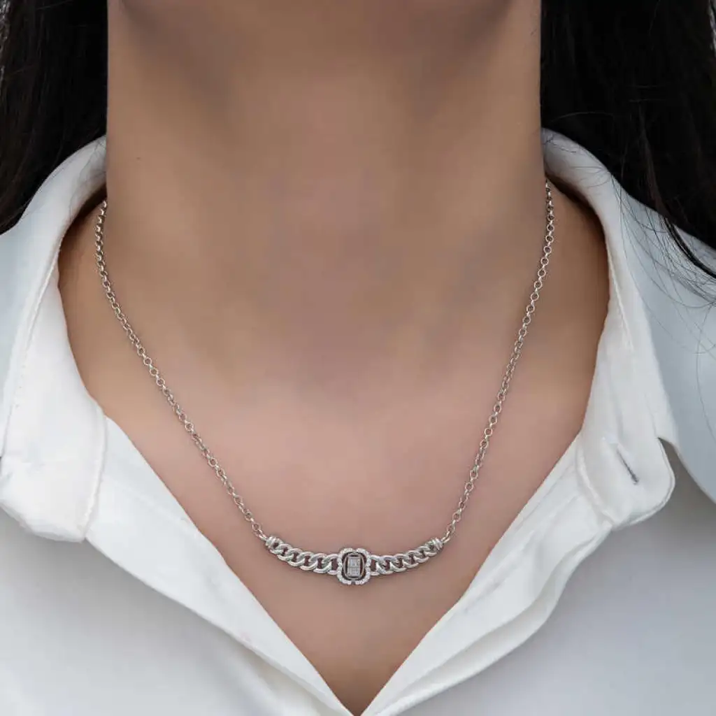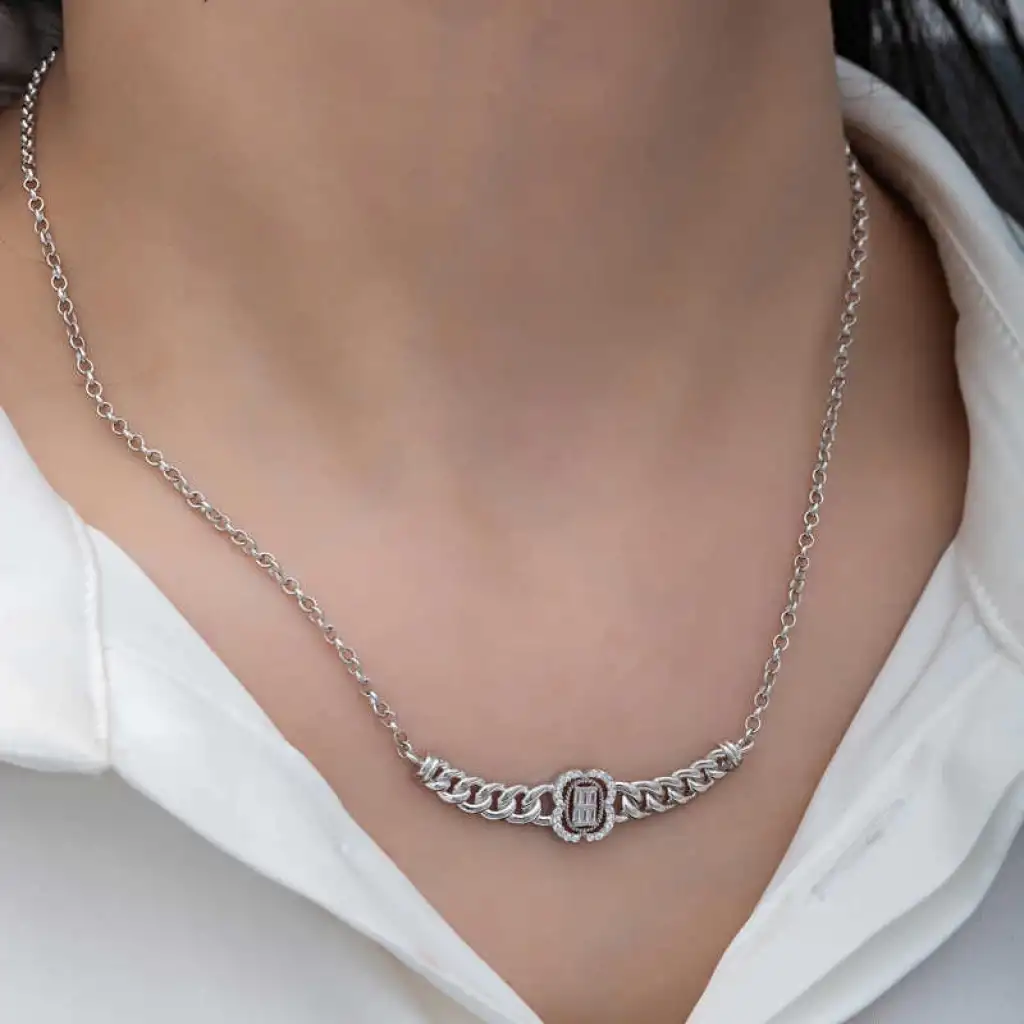 Gümüş Gurmet Zincirli Baget Taşlı Kadın Kolye