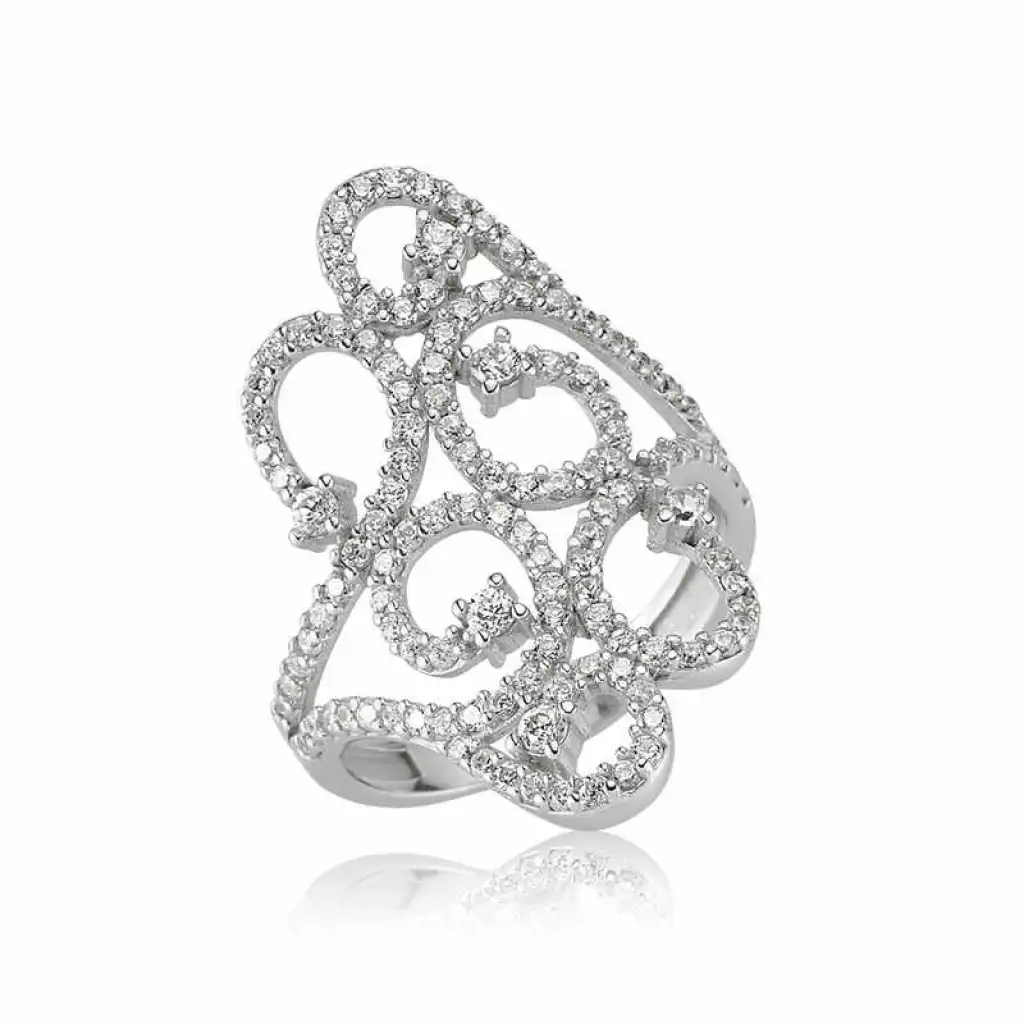 Zirkon taşlı halka desenli yüzük, severek kullanabileceğiniz ya da sevdiklerinize hediye alabileceğiniz en güzel hediyelerden biri olacaktır. Halka desenli bayan yüzük 925 ayar gümüşten imal edilmiştir. Gümüş üzerine rodyum kaplama yapılmıştır. Rodyum kaplama yapılan modeller parlaklığını uzun süre muhafaza eder ve oksitlenmesi gecikir. Üzerinde bulunan taşlar zirkon'dur. Zirkon taşlı halka desenli yüzük el emeği ile üretilmiştir. Gümüş ve değerli taşlar nedeniyle ürün ağırlığında ± %10 sapma olabilmektedir.