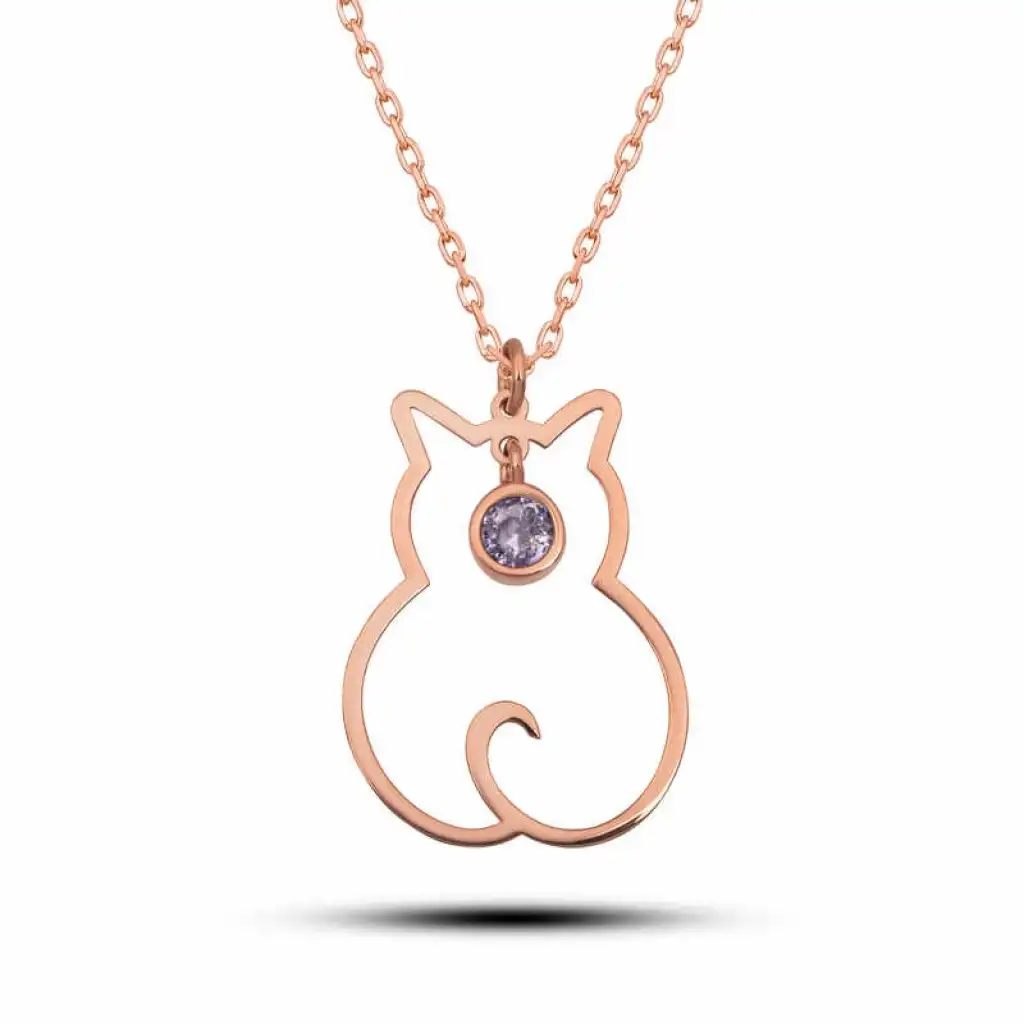 Her bir doğum taşı, belli bir ayla özdeşleşmiştir. Aleksandrit haziran ayı doğum taşıdır. Saflık, bilgelik ve masumiyet verdiğine inanılan inci, samimiyet ve dürüstlük taşı olarak da bilinir. İnciyi takı şeklinde kullananların üzerinde kişisel bütünlük, konsantrasyon ve bilgelik verirken sindirim rahatsızlıklarının tedavisine iyi geldiği söylenmektedir. Evlerimizin sevimli neşe kaynağı kediler, temiz olmalarının yanı sıra masumiyetin simgesidir. Asil ve mantıklı bir kişiliğe, mükemmel sezgilere ve akılcı bir duyarlılığa sahiptirler. Özel günlerin en tercih edilen hediye seçeneklerinden olan gümüş takılar, sevdiklerini mutlu etmek ve onlara her an yanlarında taşıyabilecekleri bir hediye vermek isteyenler için tasarlandı. Masumiyetin simgesi olan kedi figürlü gümüş kolye modelini kız kardeşinize, sevgilinize ya da arkadaşlarınıza armağan edebilirsiniz. Aleksandrit taşlı kedi kadın kolye modeli 925 ayar gümüşten imal edilmiştir. Gümüş üzerine rose kaplama yapılmıştır. Rose kaplama yapılan gümüş kedi kolye modelleri parlaklığını uzun süre muhafaza eder ve oksitlenmesi gecikir. Kolye üzerinde bulunan tüm taş Aleksandrittir. Gümüş olan zincir boyu ortalama 45 cm'dir. Gümüş kadın kedi kolye diğer tüm gümüş kadın kolye modellerinde olduğu gibi el emeği ile üretilmiştir. Gümüş ve değerli taşlar nedeniyle belirtilen ortalama ürün ağırlığında ± %10 sapma olabilmektedir.