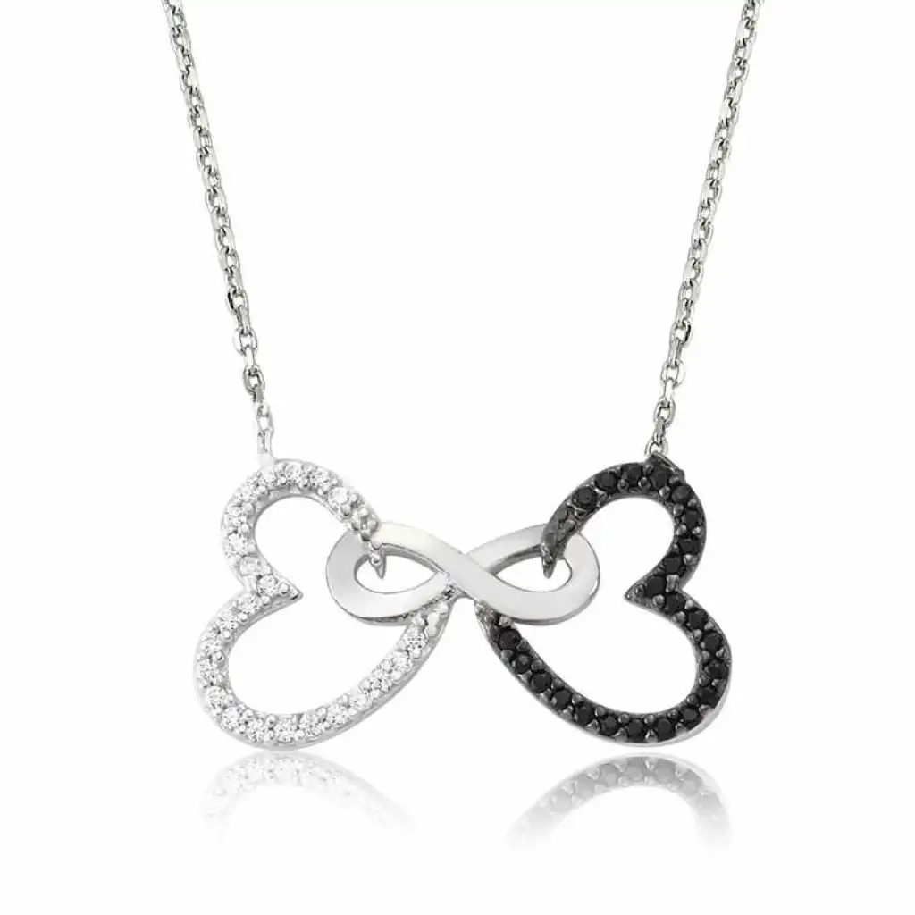 Gümüş İki Kalp Sonsuzluk Kadın Kolye