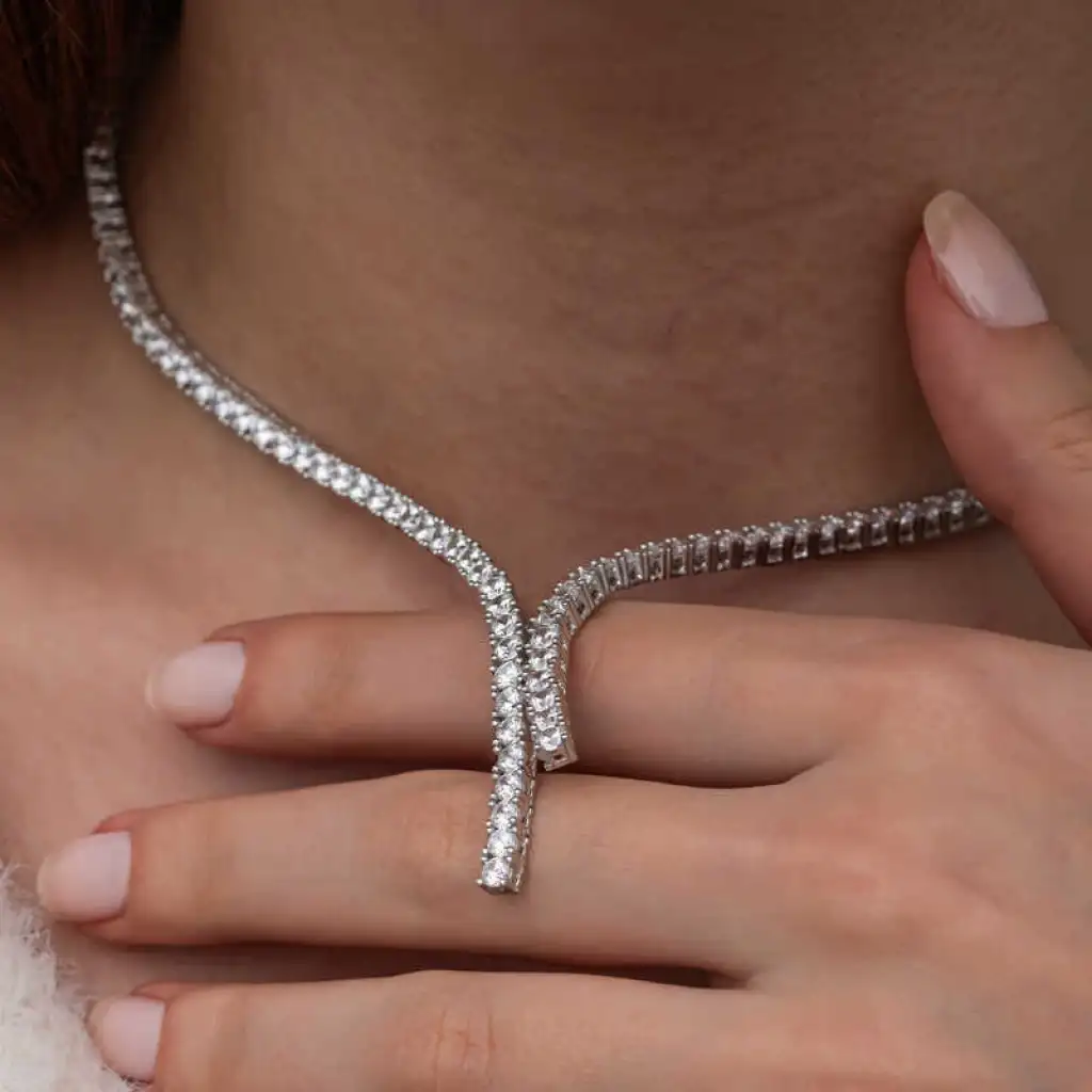 Gümüş İki Sıralı Su Yolu Kadın Kolye