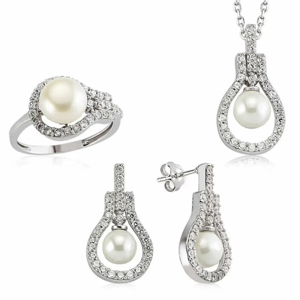 İlk aşkınız olan annenizi, eşinizi veya sevgilinizi ne kadar sevdiğinizi bu özel tasarım gümüş inci damla bayan set ile hissettirebilir ve onları mutlu edebilirsiniz. Sevdiklerinizin severek kullanacağı bu gümüş bayan set modeli ile onların yaşantınıza kattığı değeri gösterin. 925 ayar gümüşten imal edilmiş gümüş inci damla bayan set modeli beyaz zirkon taşlarla süslenmiştir. Bir adet yüzük, bir adet kolye ucu ve bir çift küpeden oluşan bu gümüş bayan set ile etrafınıza ışık saçmaya ne dersiniz? Sizin olduğu kadar sevdiklerinizin de keyifle takacağı bu gümüş inci damla bayan set hediye için de son derece uygundur. Hayatınızda değer verdiğiniz mutlu etmek istediğiniz sevdiklerinizi bu set ile sevindirebilirsiniz. Bu özel tasarım gümüş bayan set modeli üzerine rodyum kaplama yapılmıştır. Rodyum kaplama yapılmış gümüş bayan set modelleri parlaklığını uzun süre muhafaza eder. Set ile birlikte 45 cm uzunluğunda gümüş zincir de gönderilecektir. Tüm gümüş bayan set modellerinde olduğu gibi gümüş inci damla bayan set modelimiz de el emeği ile üretilmiştir. Gümüş ve değerli taşlar nedeniyle belirtilen ortalama ürün ağırlığında ± %10 sapma olabilmektedir.