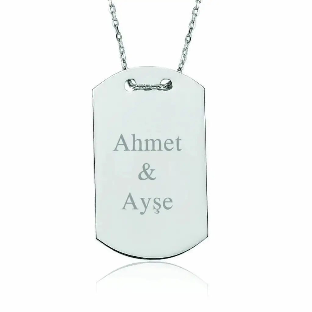 Gümüş İsimli Asker Künyesi Bayan Kolye