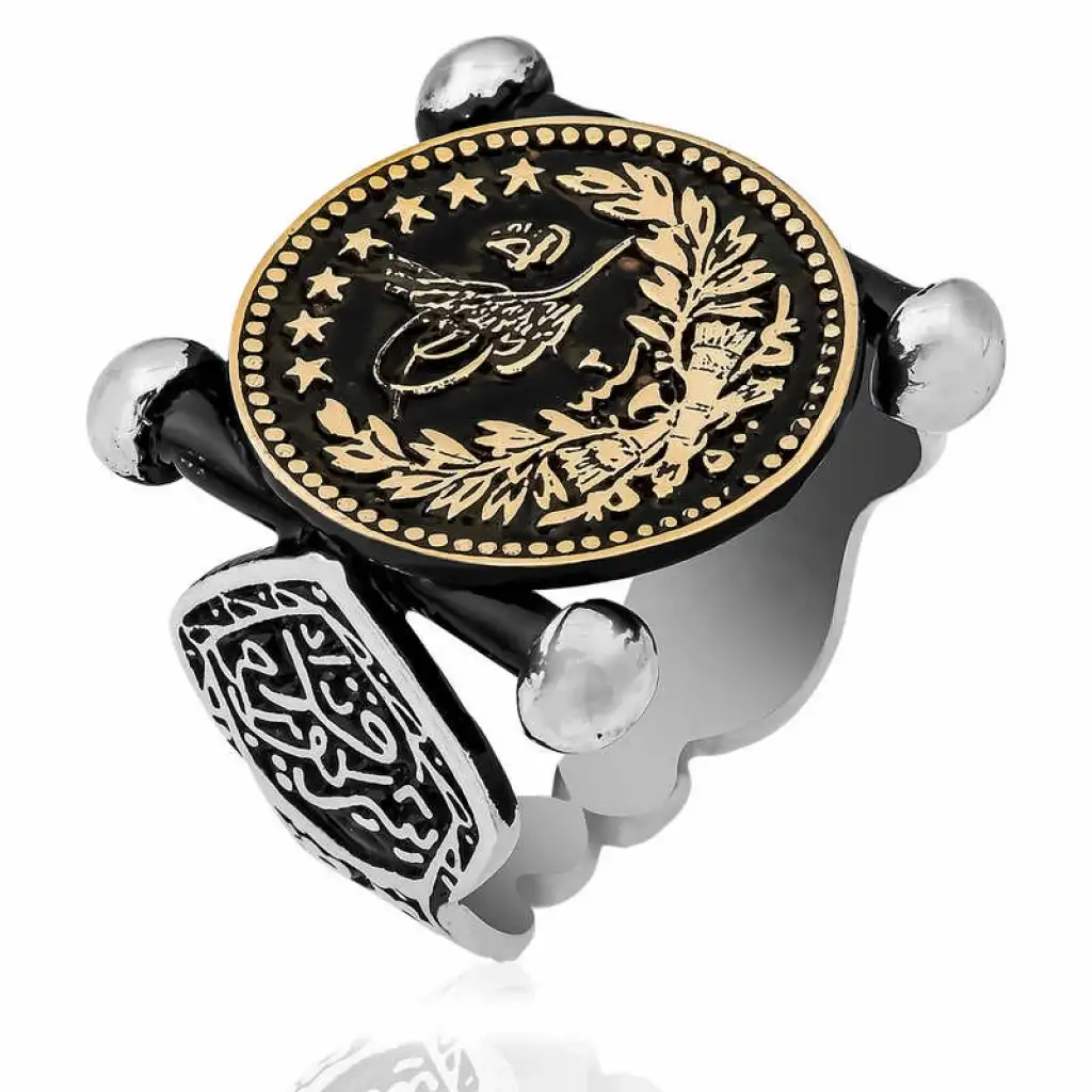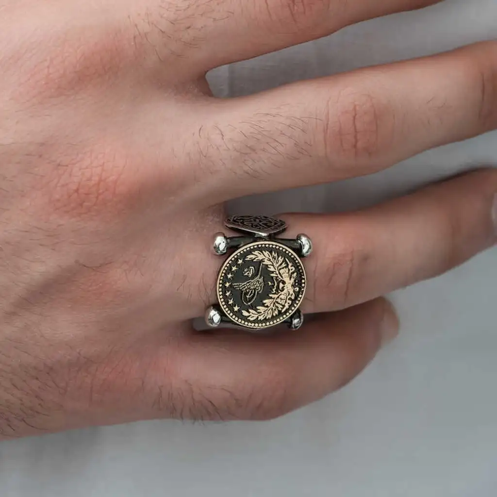 Gümüş Kadem-i Şerif Detaylı Osmanlı Tuğrası Erkek Yüzük