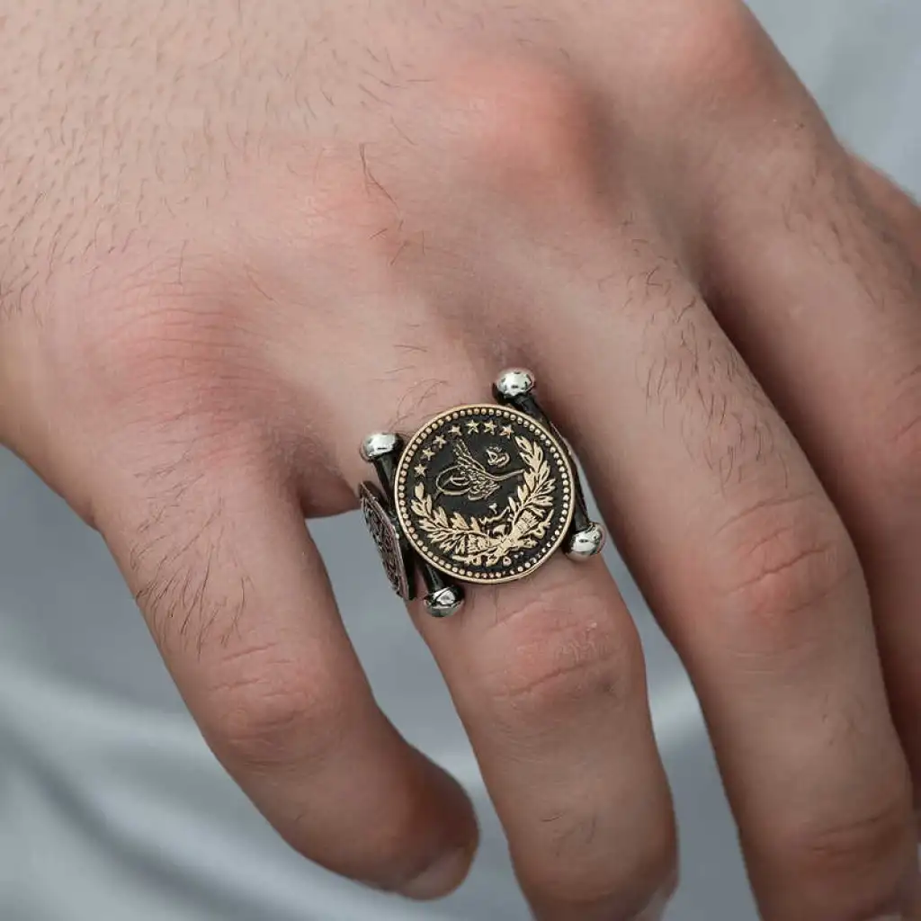 Kademi Şerif, nal-ı şerif’in bir diğer ismidir. Kademi Şerif Hz.Muhammed (sav)’in ayağına giydiği nalın şeklindeki sandalettir. Günümüzde Kademi Şerif Peygamber Efendimizin (sav) simgelerinden biri haline gelmiştir. Tuğra, Osmanlı sultanlarının imzası anlamına gelir. Her tuğra; ona ait olan padişahın ismini, varlığını, hükümdarlığını ifade eder. Tuğra sembolü her padişaha göre farklı olmak üzere birçok şekilde günümüze ulaşmıştır. Tuğra Osmanlının her döneminde korunmuş, önemini hiç kaybetmemiştir. Ve zamanla hat sanatımızda da önemli bir yere sahip olup, günümüzde hattatlar tarafından sanatsal olarak yaşatılmaktadır. Dini ve sanatı yansıtan gümüş yüzüğü severek kullanabilir, sevdiklerinize hediye edebilirsiniz. Kademi Şerif detaylı Osmanlı Tuğrası erkek yüzük 925 ayar gümüşten imal edilmiştir. Gümüş üzerinde oksit kaplama yapılmıştır. Oksit kaplama yapılan gümüş bayan yüzük modelleri parlaklığını uzun süre muhafaza eder. Gümüş yüzük modellerinin tamamı el emeği ile üretilmiştir. Gümüş ve değerli taşlar nedeniyle belirtilen ortalama ürün ağırlığında ± %10 sapma olabilmektedir.