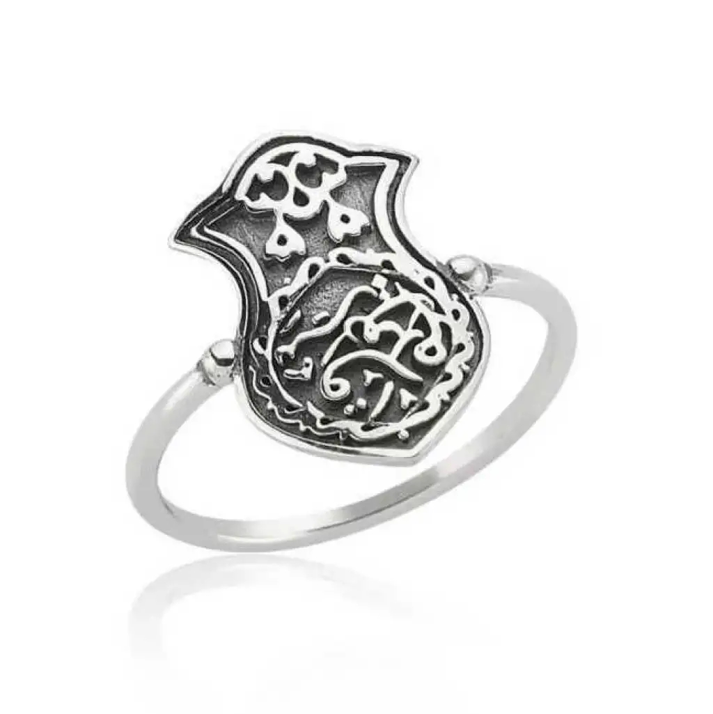 Kademi Şerif, nal-ı şerif’in bir diğer ismidir. Kademi Şerif Hz.Muhammed (sav)’in ayağına giydiği nalın şeklindeki sandalettir. Günümüzde Kademi Şerif Peygamber Efendimizin (sav) simgelerinden biri haline gelmiştir. Kademi Şerif yüzük 925 ayar gümüşten imal edilmiştir. Gümüş üzerinde oksit kaplama yapılmıştır. Oksit kaplama yapılan gümüş bayan yüzük modelleri parlaklığını uzun süre muhafaza eder. Gümüş yüzük modellerinin tamamı el emeği ile üretilmiştir. Gümüş ve değerli taşlar nedeniyle belirtilen ortalama ürün ağırlığında ± %10 sapma olabilmektedir.