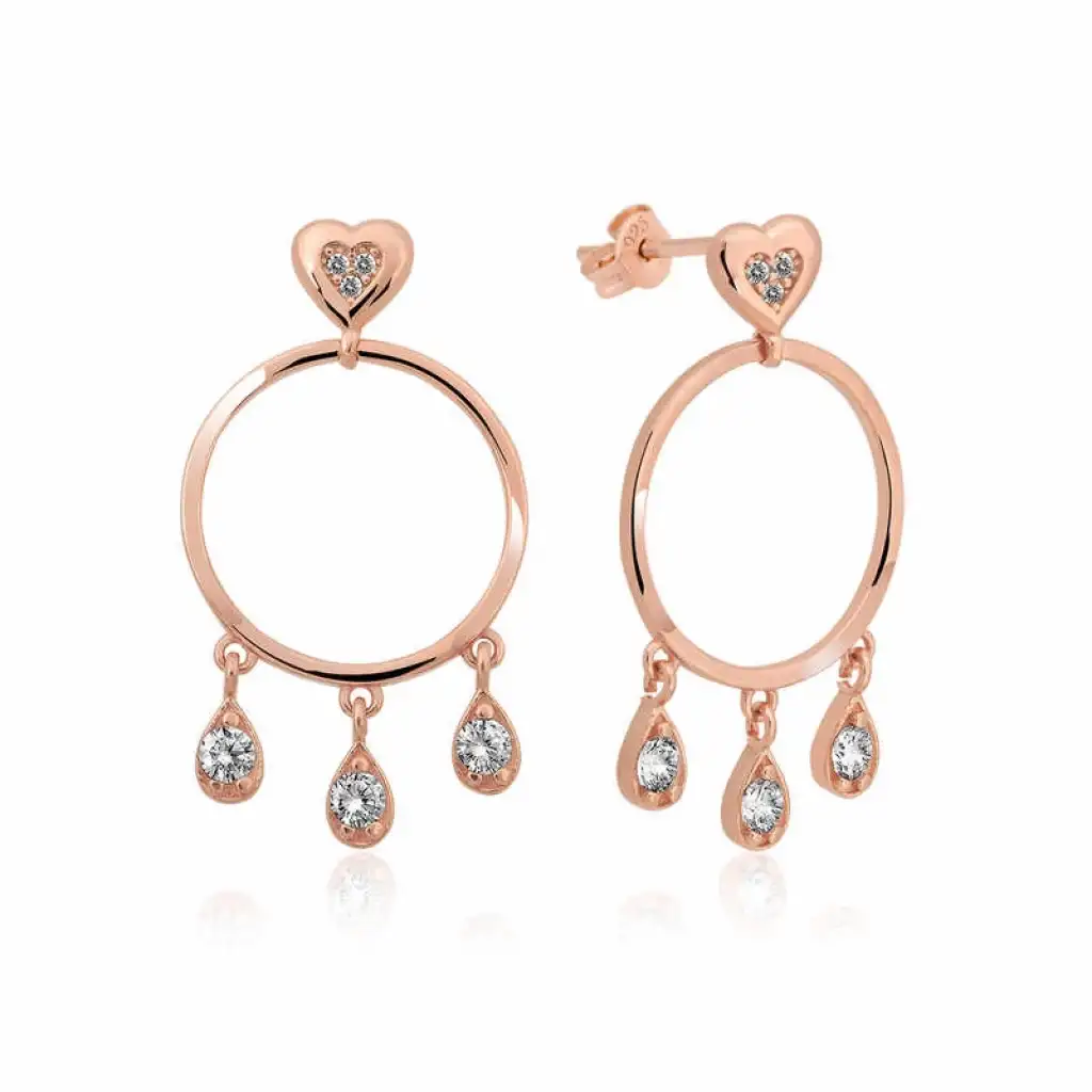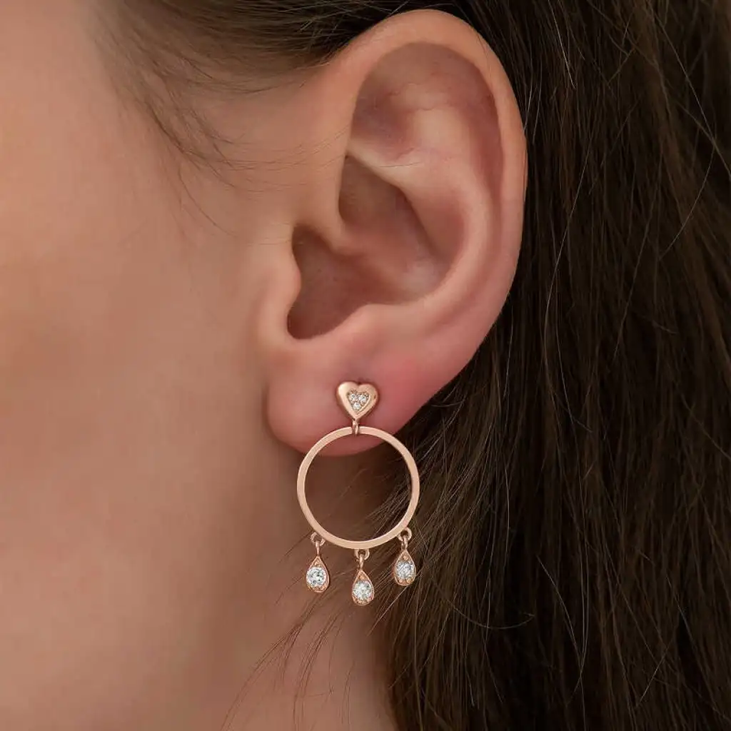 Gündelik hayatta ve özel günlerde şık tasarımı ile dikkat çeken bu küpeyi severek kullanacaksınız. Tüm bayanlara hitap eden, modası geçmeyecek olan gümüş kalp detaylı halka bayan küpe sizleri bekliyor. Gümüş rose altın kaplama beyaz taşlı, kalp detaylı halka bayan küpe; doğum günü hediyesi, sevgililer günü hediyesi veya annelere hediye olarak özel günlerde tercih edilebilecek mükemmel bir seçenektir. Gümüş küpe 925 ayar gümüşten imal edilmiştir. Gümüş üzerine rose kaplama yapılmıştır. Rose kaplama yapılan gümüş küpe modelleri parlaklığını uzun süre muhafaza eder ve oksitlenmesi gecikir. Tüm bayan küpelerde olduğu gibi bu küpe modeli de el emeği ile üretilmiştir. Gümüş ve değerli taşlar nedeniyle belirtilen ortalama ürün ağırlığında ± %10 sapma olabilmektedir.