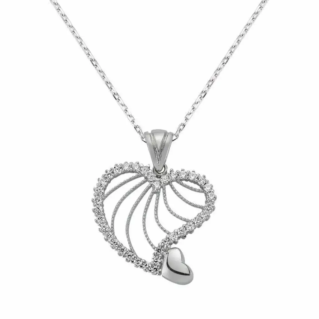 Kalp deseniyle aşkı ifade eden gümüş kalpli bayan kolye modeli ile sevginiz, sevdiğiniz kadının teninde hayat bulsun. Genç sevgililerin ve kendini genç hissedenlerin özel günlerde seçebileceği bu kalpli bayan kolye modeli ile sevdiğinizin boynunu aşkla süsleyin. Sizin olduğu kadar sevdiklerinizin de keyifle takacağı kalp desenli kolye modeli sevdiğinize en güzel hediyelerden biri olacaktır. Kalpli bayan kolye modeli 925 ayar gümüşten imal edilmiştir. Gümüş üzerine rodyum kaplama yapılmıştır. Rodyum kaplama yapılan gümüş bayan kalpli kolye modelleri parlaklığını uzun süre muhafaza eder ve oksitlenmesi gecikir. Kolye üzerinde bulunan beyaz taşlar zirkondur. Gümüş olan zincir boyu ortalama 45 cm'dir. Tüm bayan kolye modellerinde olduğu gibi gümüş kalpli bayan kolye modeli de el emeği ile üretilmiştir. Gümüş ve değerli taşlar nedeniyle belirtilen ortalama ürün ağırlığında ± %10 sapma olabilmektedir.